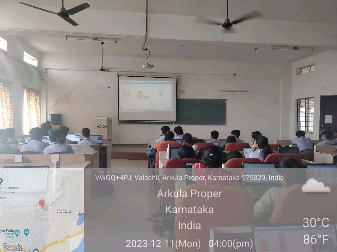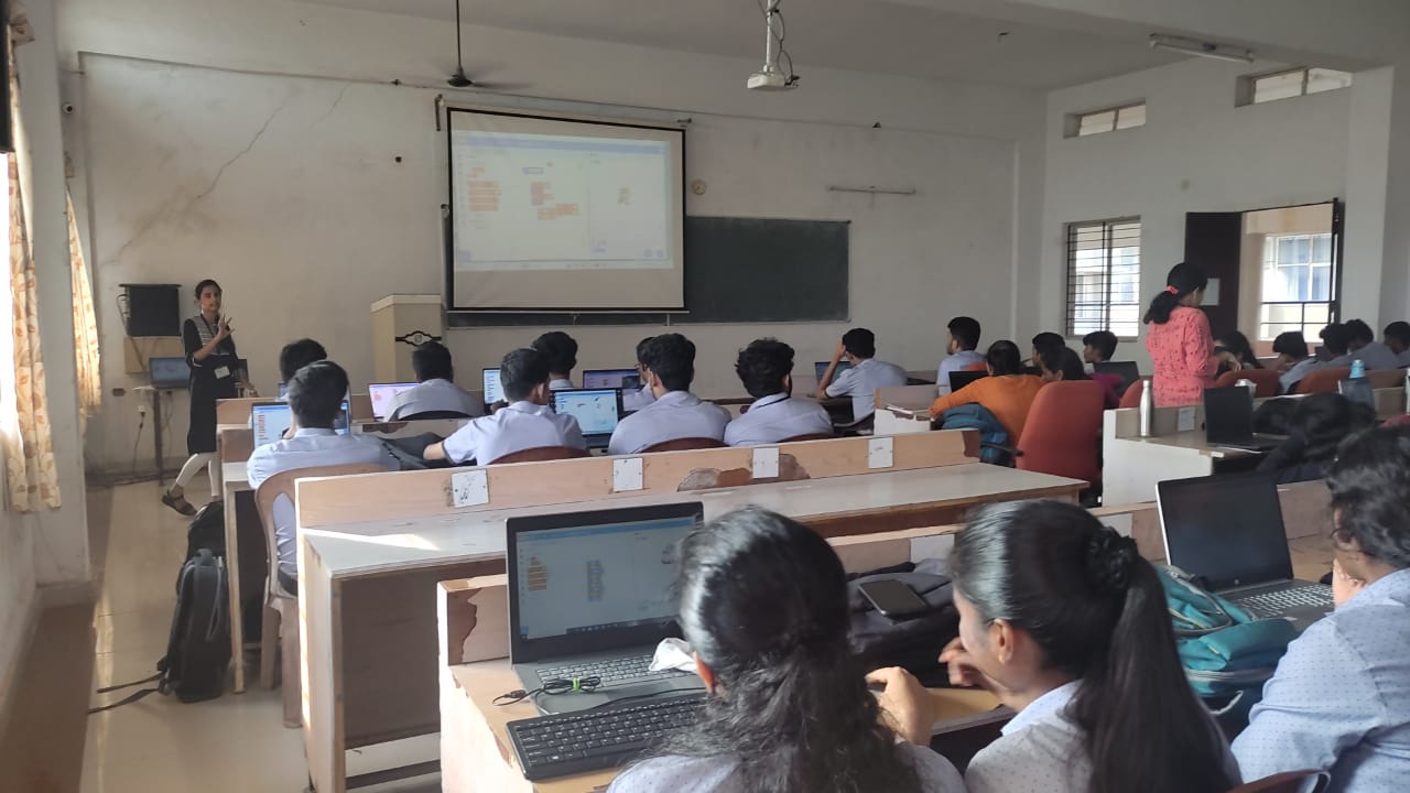 As an association activity of Department of Information Science & Engineering, under AISE a hands-on session was conducted on “INTRODUCTION TO SCRATCH”. This event was supported by Mr. Sudarshan K, Head of the department ISE . The Hands-on session was conducted by Students of 3rd Year ISE Jayashree K. R Sinchana under the guidance of Mrs.Sowmya Assistant professor, ISE organised the event on 11/12/2023.The hands-on session was about the introduction to scratch and discussion on following concepts: Scratch programming, sprites function as programmable characters or objects, each equipped with its distinct set of instructions and behaviors. Basic commands, enabling sprites to perform essential actions like movement, costume changes, and responses to user input. The pivotal concept of loops is subsequently presented as a means to efficiently repeat sets of instructions, with the repeat block enabling users to specify the number of iterations and the forever block creating an infinite loop. Users learn to apply these loops to sprites orchestrating dynamic movements or sequential costume changes. In advanced stages, the introduction of variables allows for dynamic control over iteration numbers, enhancing programming flexibility.Students of 3rd & 5th SEM ISE 3rd SEM CS&D took active participation in the event.