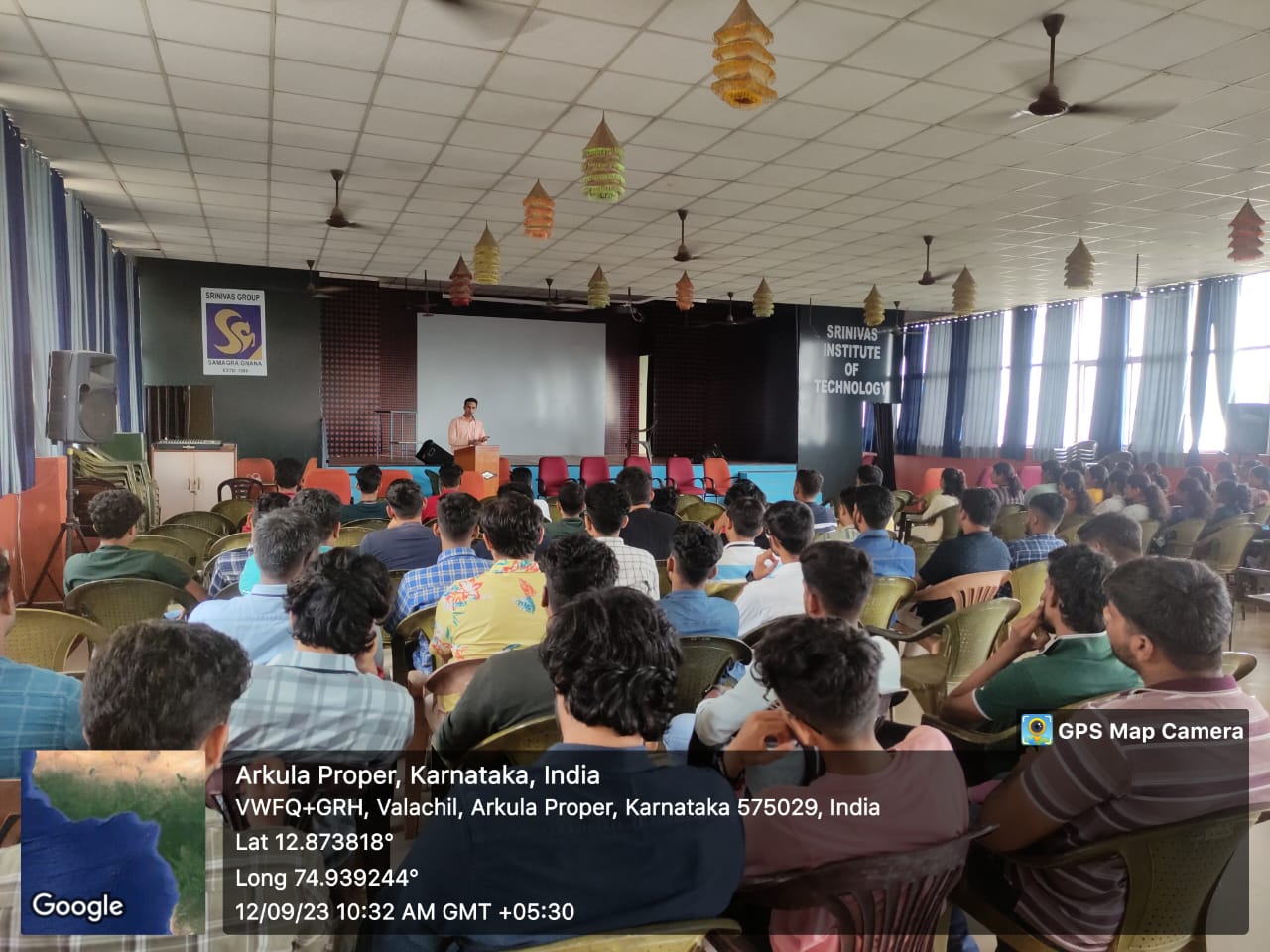 The Department of Computer Science and Engineering student association ASCEE organised an pre-placement talk on ”Campus to Corporate connect” for the final year students on 12th September 2023 at Srinivas Institute of Technology, Mangaluru. Dr. Dheeraj Hebri, Training & Placement Officer, Srinivas Institute of Technology said that the Placement Cell strives to groom students for the industry while assisting them in choosing the perfect role that suits them the best at the corporate level through on-campus job opportunities. He also motivated the students by saying that the ultimate aim of any degree should be application of knowledge to solve real life problems and the Placement Cell strives hard to make students realize their true potential, be it taking up a job or starting a new venture. Prof. Ravishankara K, H.O.D, Dept. of CS&E urged the students to inculcate aptitude , communication, soft skills and prepare themselves to aim towards getting placed in reputed companies. An interactive Q&A round between Dr. Dheeraj Hebri, and the students marked the end of the session.