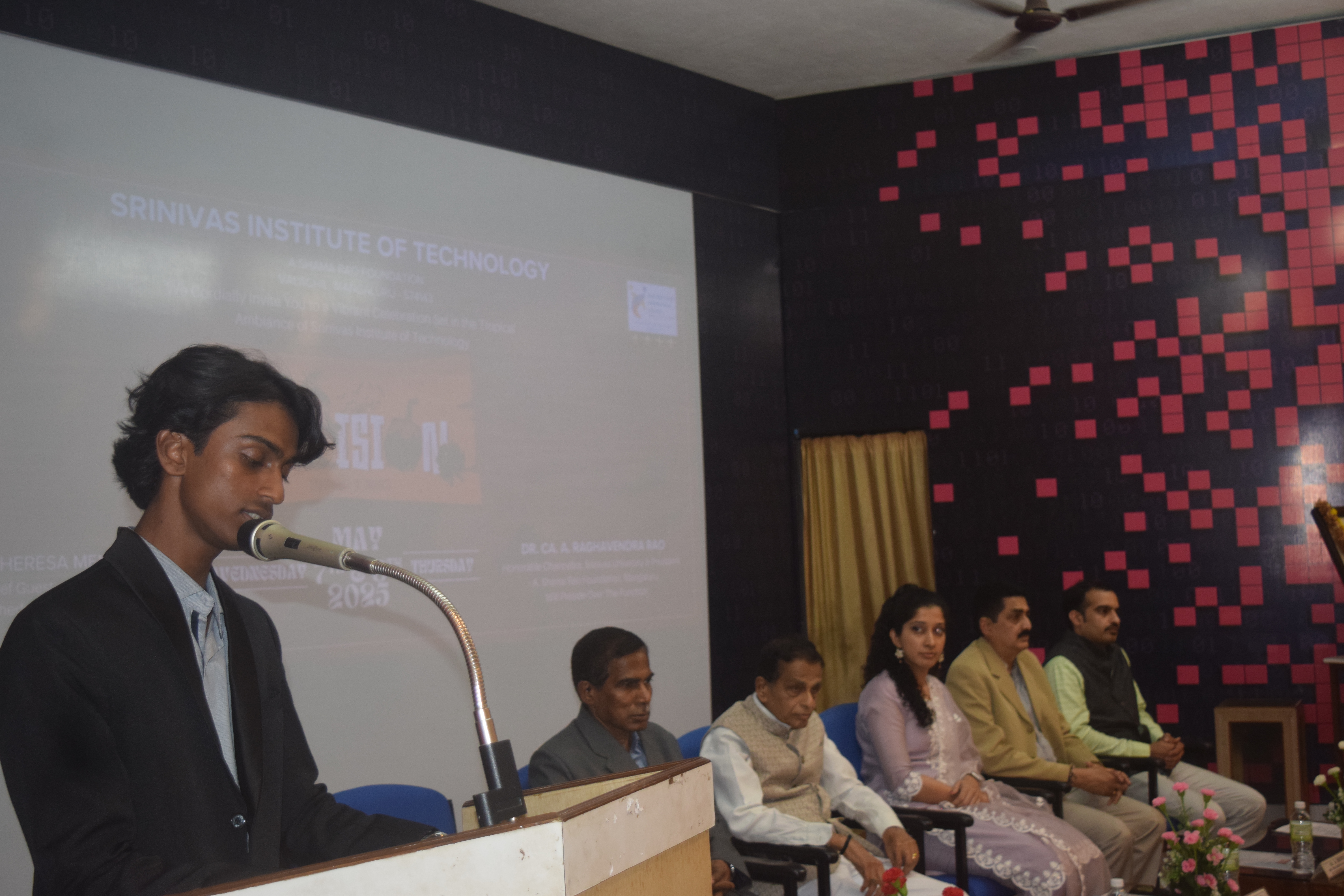 National-Level College Fest – Envision 2025 – Inaugurated at Srinivas Institute of Technology, Mangaluru Mangaluru, May 7, 2025: Srinivas Institute of Technology, Valachil, Mangaluru, witnessed the grand inauguration of Envision 2025, a national-level intercollegiate techno-cultural fest designed to ignite innovation, leadership, and holistic student development. The event was presided over by Dr. CA A. Raghavendra Rao, Honorable Chancellor of Srinivas University and President of A. Shama Rao Foundation, Mangaluru. In his presidential address, he emphasized the importance of communication skills in a student's career. “Effective communication is the bridge to success. Mastery over Commercial English is essential for professional growth,” he remarked. Dr. A. Shrinivas Rao, Honorable Pro Chancellor of Srinivas University and Vice President of A. Shama Rao Foundation, addressed the gathering and applauded the students’ efforts in organizing Envision 2025. He stressed that such events build innovative thinking and leadership qualities and are a vital part of personality development at Srinivas institutions. Ms. Jasline Theresa Menezes, HR professional at Tetherfi Technologies Pvt. Ltd., graced the occasion as Chief Guest. In her insightful address, she emphasized the growing demand for soft skills in the corporate world and encouraged students to participate in extracurricular activities. “Skills like crisis management, leadership, and project execution can be developed through these platforms. Embrace challenges and turn them into opportunities,” she advised. Dr. Shrinivasa Mayya D, Principal of Srinivas Institute of Technology, florally welcomed the President of the function, Dr. CA A. Raghavendra Rao, and appreciated the spirit of the students in hosting a fest of such scale and diversity. Mr. Acharya Pavan, Student Coordinator of Envision 2025, delivered the formal welcome address, introduced the dignitaries, and set the tone for the event with enthusiasm and energy. Dr. Rajesh, Faculty Coordinator of the fest, presented a comprehensive report on Envision 2025, noting that the fest features over 32 technical and non-technical events with more than 800 participants from various institutions across the country. The event was graced by Principals of various colleges, Heads of Departments, faculty members, and staff, marking a strong academic and collaborative spirit. The function was elegantly hosted by the Masters of Ceremony, Mr. K. Abhijna Shetty and Ms. Yukthi, who conducted the proceedings with grace and professionalism. The inauguration concluded with a heartfelt vote of thanks by Mr. Vishal, Students Council President, who expressed gratitude to all dignitaries, participants, and organizers for making Envision 2025 a grand success. As the fest unfolds, Envision 2025 promises two days of learning, creativity, and spirited competition, reinforcing the institution’s commitment to excellence in technical and personal development.
