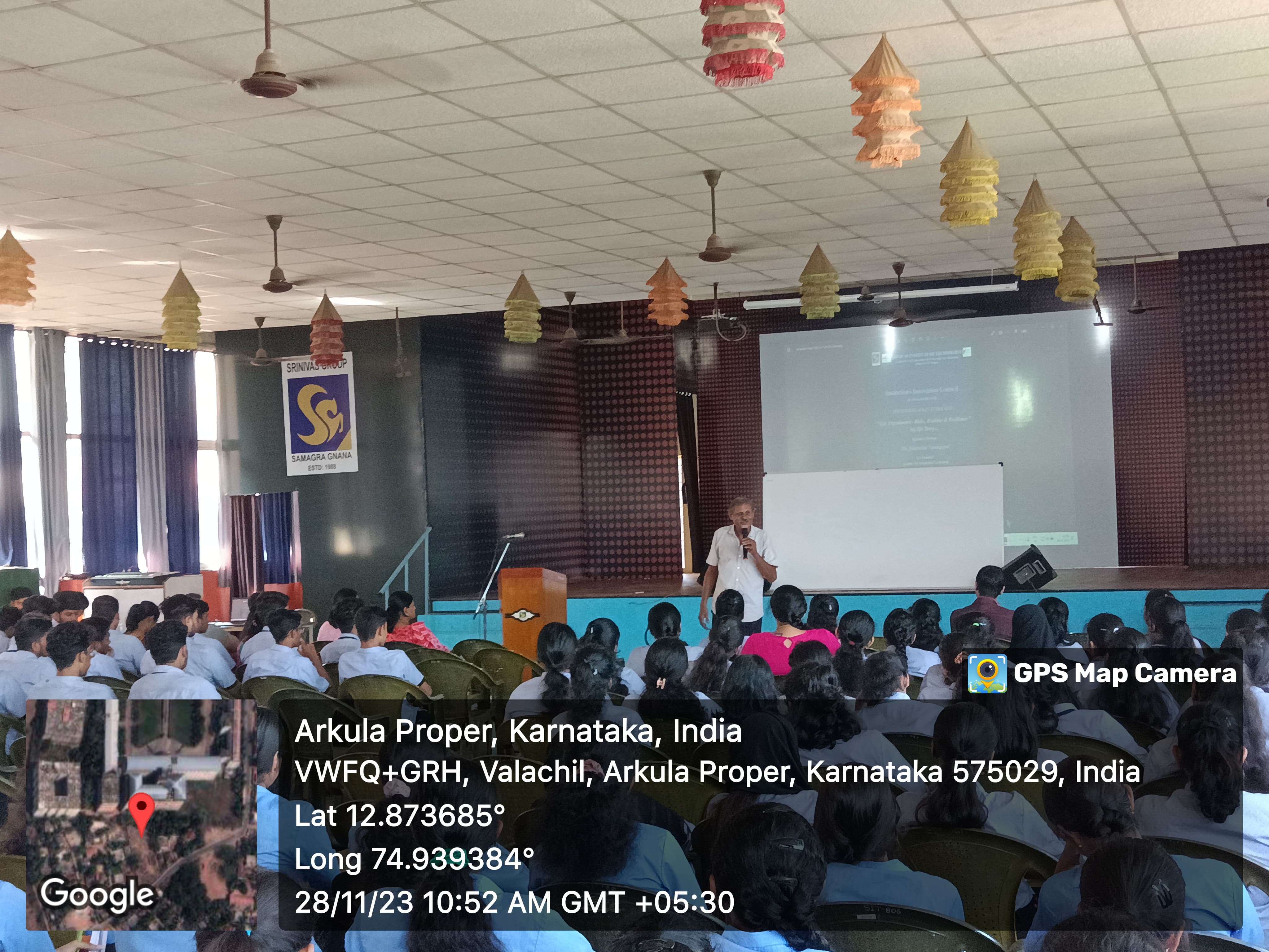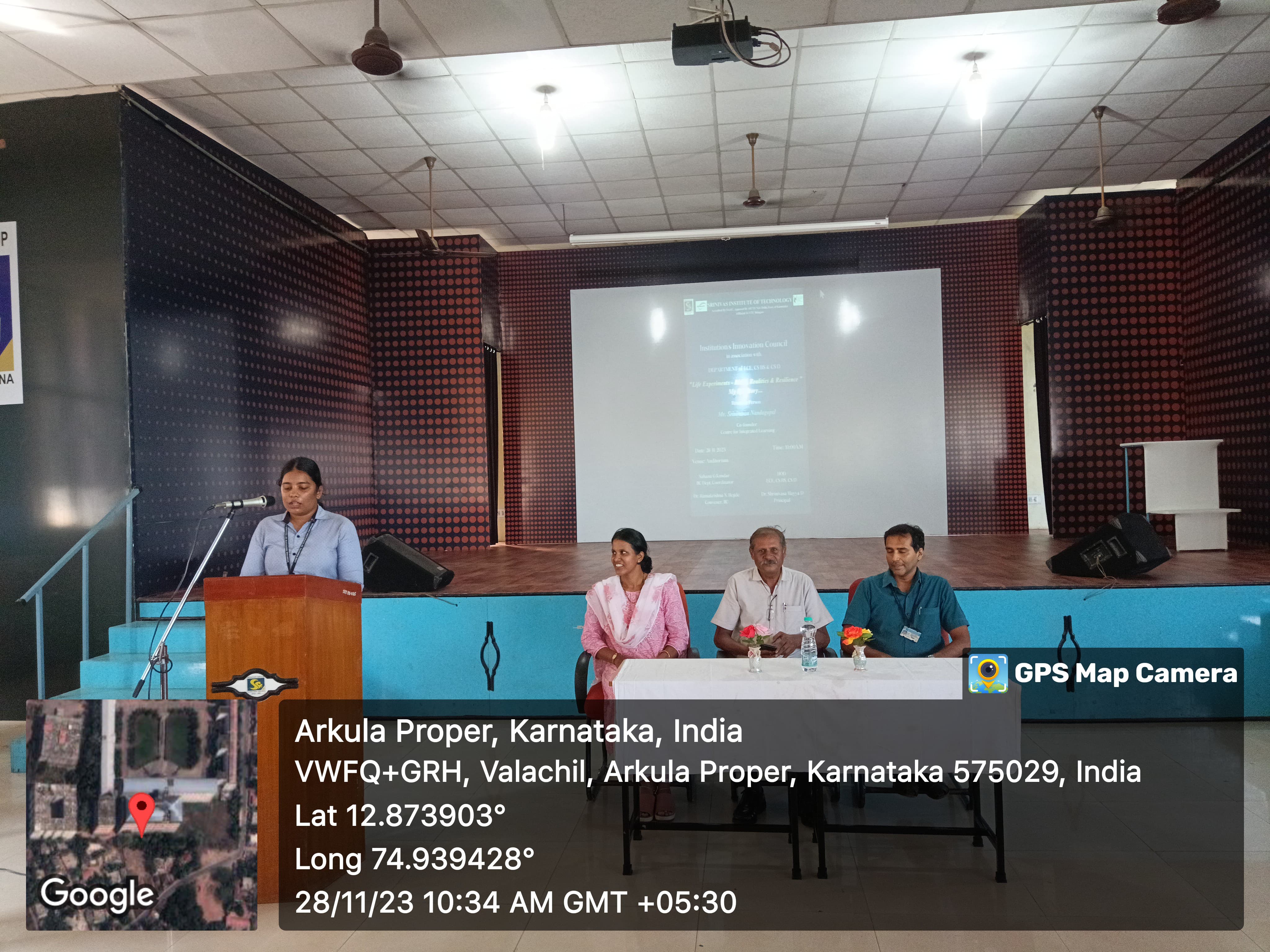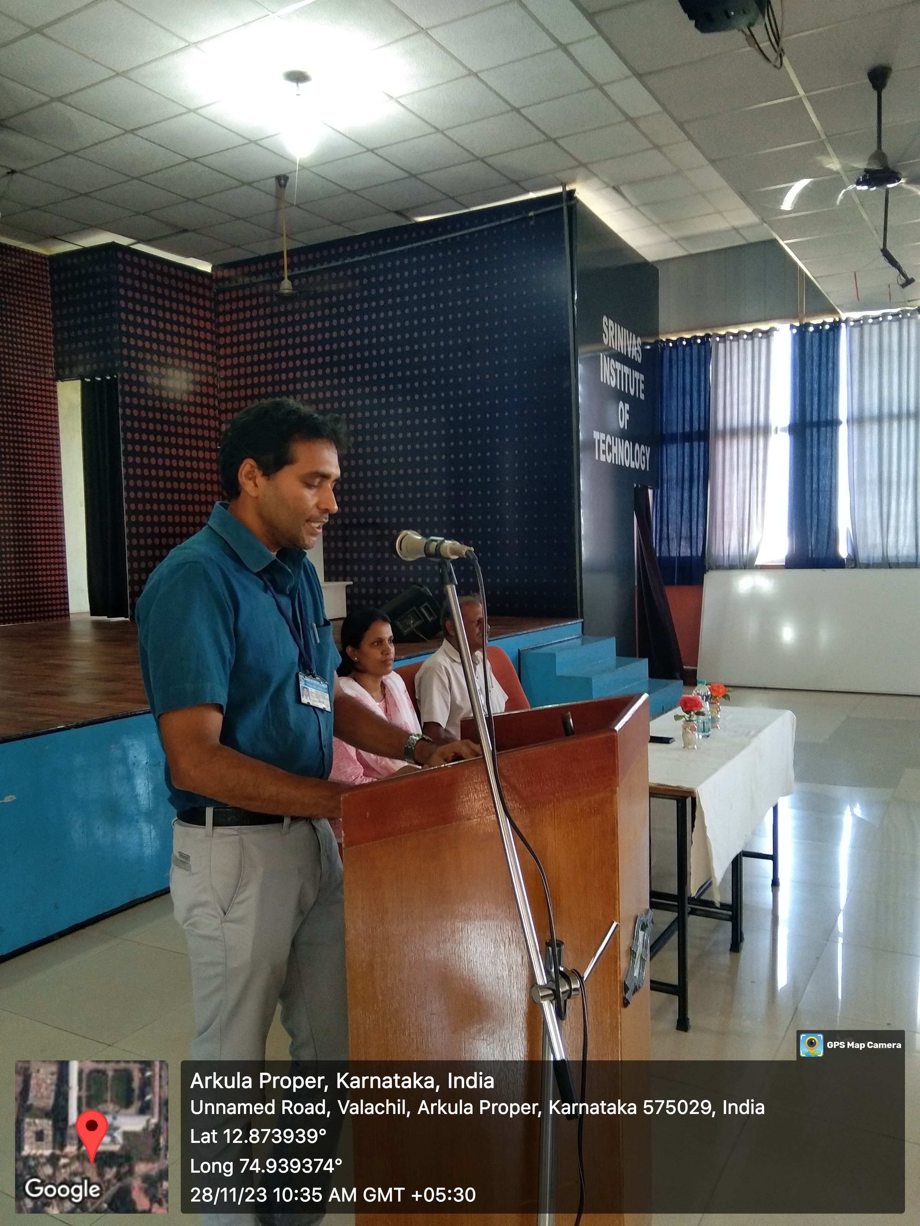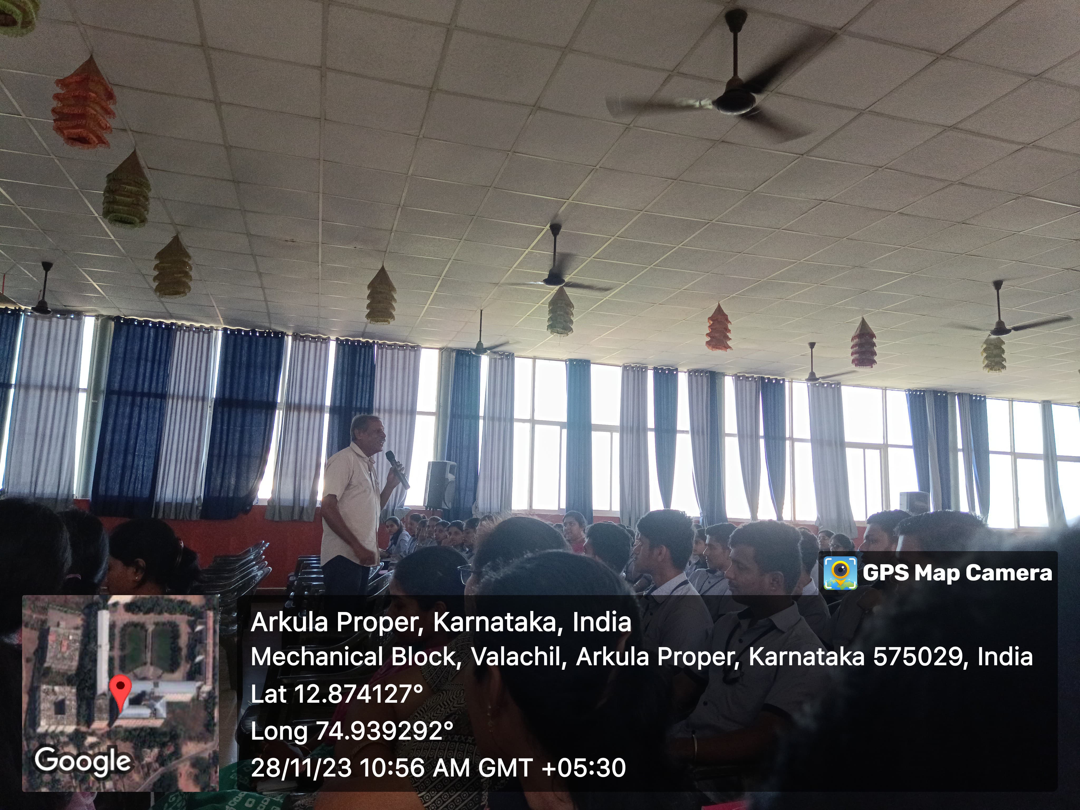 The SIT ECE Department, Dept. of Computer Science and Business System and Computer Science and Design with the IIC cell, organized a session on 'Life Experiments-Risks, Realities &Resilience'-My life Story. This program took place on 28-11-2023 in Auditorium,4th floor, SIT. Mr. Srinivasan Nandagopal, Co-Founder, Centre for Integrated Learning served as the resource person. He encouraged students to write their life story by explaining the purpose of life, being human and living and existing in the system by aiming into future goal. Additionally, he also spoke about inverted pyramid of life, the risks and realities which exists in the system. Students of 3rd & 1st semester ECE, CS-BS, and CS-D actively participated in this program.