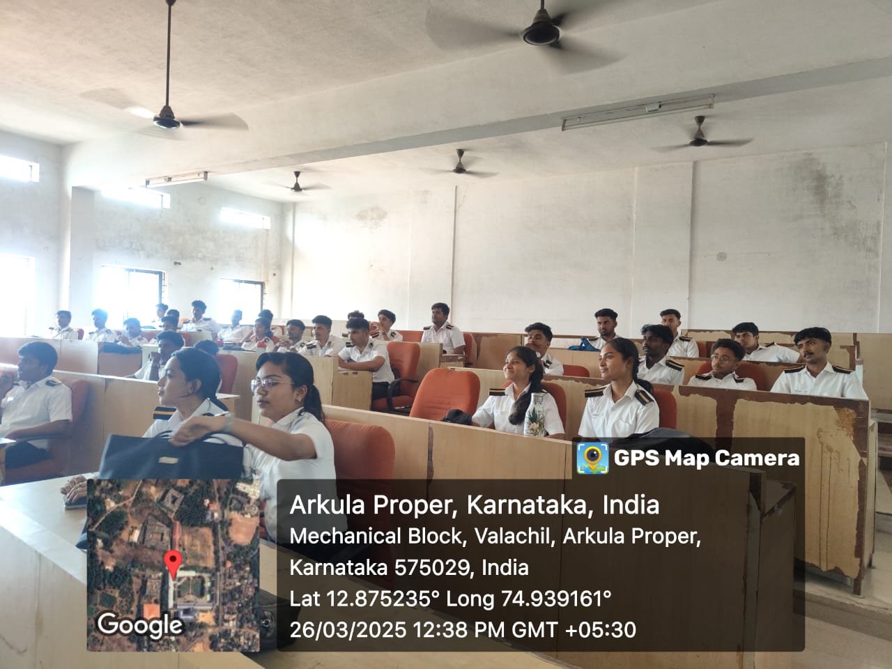 Srinivas Institute of Technology, Mangaluru organized an informative session on 'Career at Sea' to provide students with a comprehensive understanding of maritime professions. The event focused on educating participants about the unique lifestyle, challenges, and opportunities associated with careers in the global shipping industry. The session was facilitated by experienced maritime professionals who have spent significant time working on various vessels. They shared firsthand accounts of life at sea, discussing aspects such as work schedules, responsibilities, living conditions, and the international nature of the profession. The speakers emphasized both the rewarding aspects and the challenges of maritime careers, providing students with a balanced perspective. A major highlight of the event was the detailed information on various roles available on ships, including deck officers, engineers, electro-technical officers, and support staff. The speakers outlined the educational qualifications, certification requirements, and career progression paths for different maritime positions. They also discussed the competitive compensation, tax benefits, and opportunities for rapid career advancement that make seafaring an attractive career option. The session addressed important topics such as safety protocols, environmental considerations, technological advancements in shipping, and the industry's response to global challenges. Participants gained insights into how maritime professionals contribute to international trade and global supply chains. The event concluded with a Q&A session where students asked questions about preparation for maritime careers, coping with extended periods away from home, and strategies for maintaining work-life balance. The Department of Marine Engineering organized this informative session as part of its efforts to expose students to diverse career options and industry perspectives.