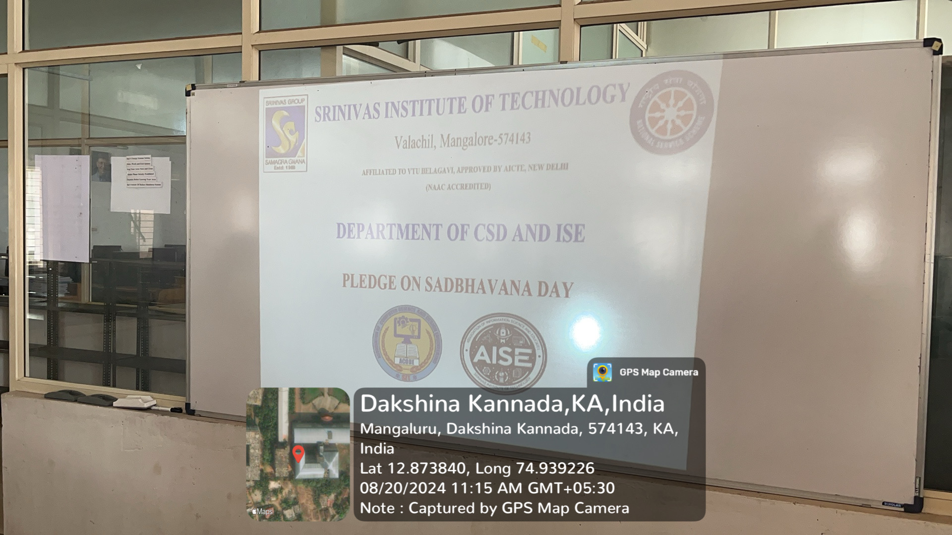 Srinivas Institute of Technology Valachil Mangaluru andNSS unit of the institute in association with Department of Information science Enginnering and Computer Science and Design has celebrated Sadhbhavana Diwas in the college. Sadbhavana Diwas is celebrated to commemorate the birth anniversary of former Prime Minister Rajiv Gandhi on 20th August 2023 . Being the youngest Prime Minister, Rajiv Gandhi's thought process was modern and different from others. This day is observed as 'Sadbhavana Diwas' or Harmony Day' with an objective to encourage national integration, peace, affection, and communal harmony among the Indian people of all religions and languages. It promotes the unity in diversity and feeling of oneness amongst people to a great level. It brings a type of racial and cultural similarity among people of different community. Communal harmony is a prerequisite for a country like India, with its diverse population and cultures. Communal harmony ensures that every religion gets equal treatment, and tolerance builds amongst citizens. ProfRajeshwari, Department NSS Coordinator welcomed the audience and recited the pledge and made all the students to recite the pledge both in English and Kannada. Around 28 students took the oath and pledged to abide by the rules.Dr.Padmanayana,HOD,Computer Science and Design and Prof.Rakesh Mallya, NSS officer was present during the occasion.