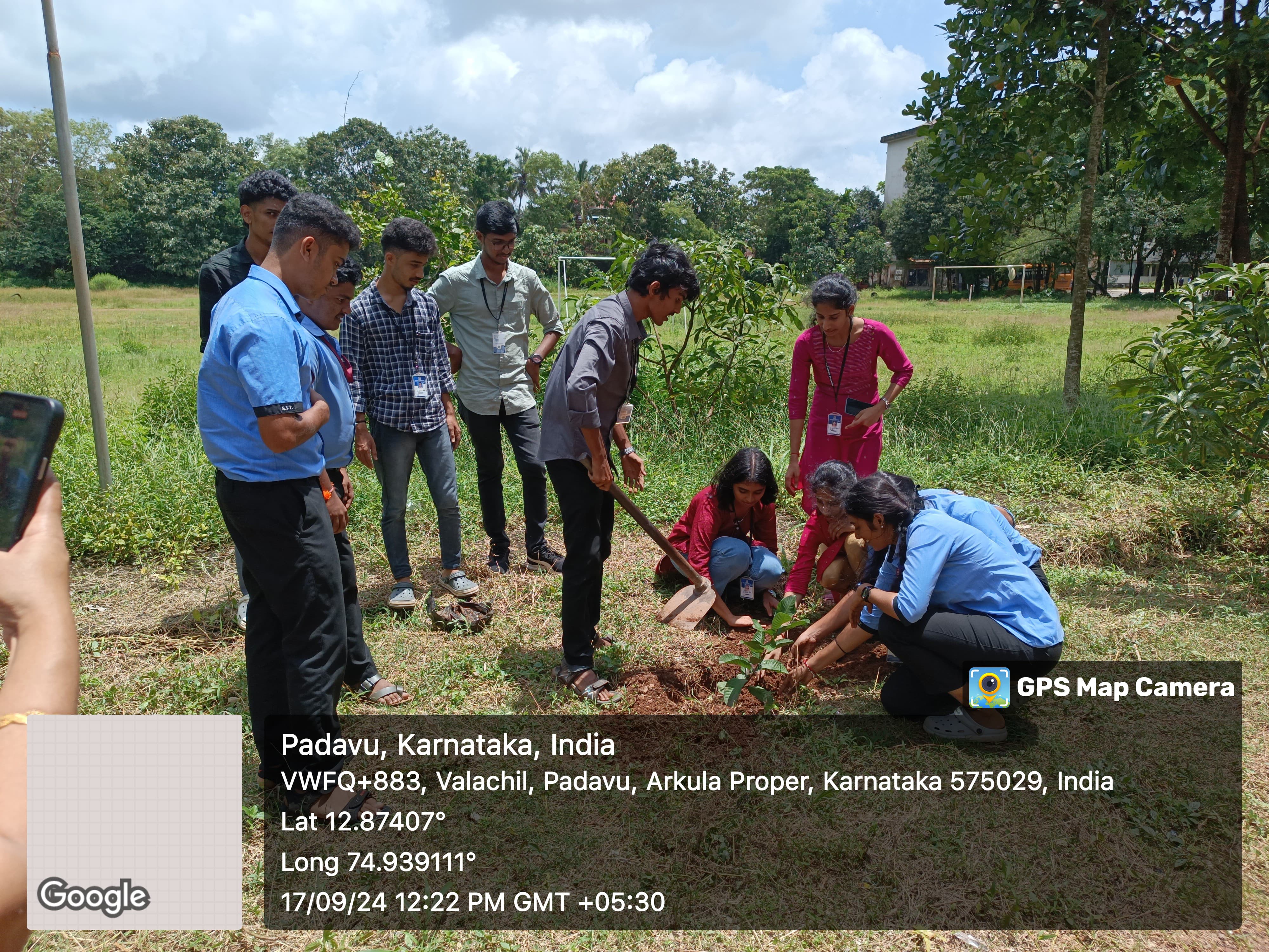 As part of the Swachhata Hi Sewa (SHS) Campaign, the 3rd and 5th semester NSS students from the Association of Computer Science and Design (ACODE) at Srinivas Institute of Technology, Valachil, organized a one-day plantation drive on September 17, 2024. The event took place on the campus grounds, aiming to contribute to a sustainable environment. Dr. Padmanayana (HOD, CSD) and Assistant Professor Rajeshwari R. Shettigar played key roles in guiding the students.
