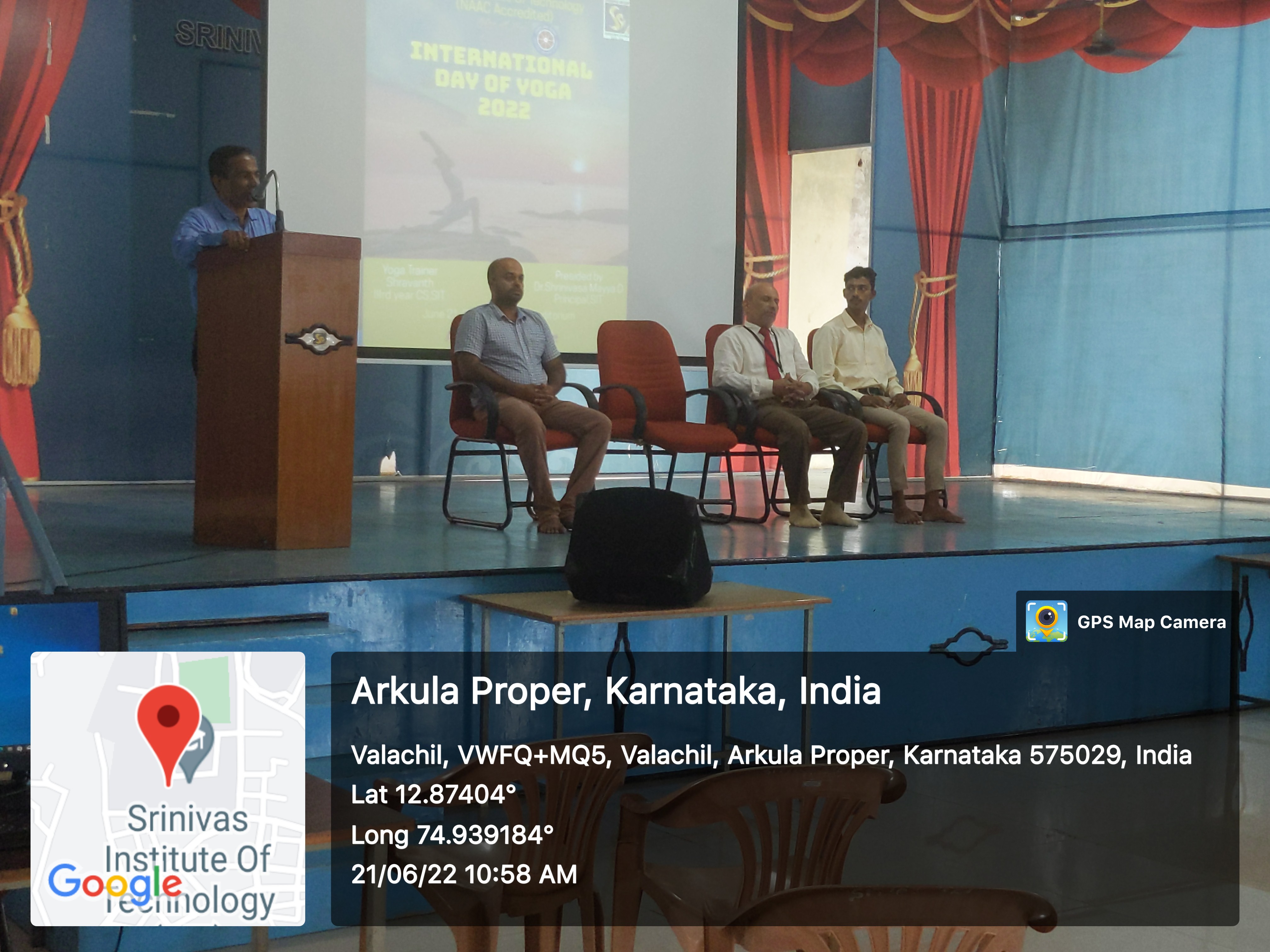 NSS Unit celebrated International Yoga Day on 21/06/22 in association with Institutions Innovation Council. Dr.Hariprakash, of MBA Department welcomed the gathering and introduced the Yoga trainer to the gathering. Yoga trainer Mr.Shravanth k.s of 4th sem computer science and engineering department conducted yoga session to gathering. President of the function Dr.Shrinivasa Mayya D delivered presidential address on “Yoga for humanity” which is the theme of the international yoga day 2022.He urged students to do yoga on daily basis and get fit both physically and mentally which can lead to uplift of human values. He then presented the memento to Mr.Shravanth. Dr.Ramakrishna N Hegde, IIC convener was present during the occasion.NSS officer Mr.P.Rakesh Mallya delivered the vote of thanks.
