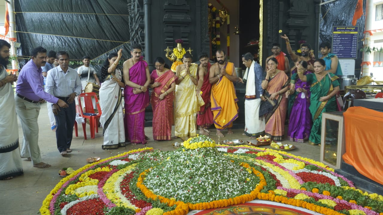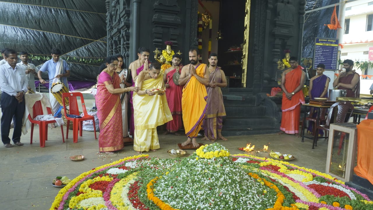 Mangaluru September 13 2025 On the auspicious occasion of Krishna Janmashtami a grand Laksha Namarchane was held at Srinivasa Temple Vaikunta Valachil Mangaluru on Saturday September 13 2025 with great devotion and spiritual fervor. The event began early in the morning with Nitya Pooja from 8:45 a.m. to 9:00 a.m. followed by Bhajane from 9:00 a.m. to 10:00 a.m. The sacred Laksha Namarchane to Lord Srinivasa commenced at 10:00 a.m. in the temple premises drawing devotees from far and wide. The rituals concluded with the Maha Mangalarathi and Prasada Vitarane at 12:30 p.m. The pooja and rituals were devoutly performed by Dr CA A Raghavendra Rao & Mrs Vijayalakshmi Rao Dr Srinivas Rao & Mrs Mithra Rao along with family members who offered their heartfelt prayers to Lord Srinivasa. This auspicious event was well organized by Dr Ananth Kumar Kulkarni HoD Department of Mathematics and Dr Sumana V S Cultural Committee Coordinator Srinivas Institute of Technology Mangaluru. The entire team was led under the guidance of Dr Shrinivasa Maya D Principal SIT Mangaluru. Principals of various sister institutions were also present adding grace and significance to the occasion. Devotees participated with utmost faith chanting the divine names and seeking the blessings of the Lord for peace prosperity and well-being. The atmosphere at the temple was filled with devotion music and spiritual energy making the occasion memorable for all present. The temple committee expressed gratitude to all devotees for their enthusiastic participation and extended their blessings to the community.