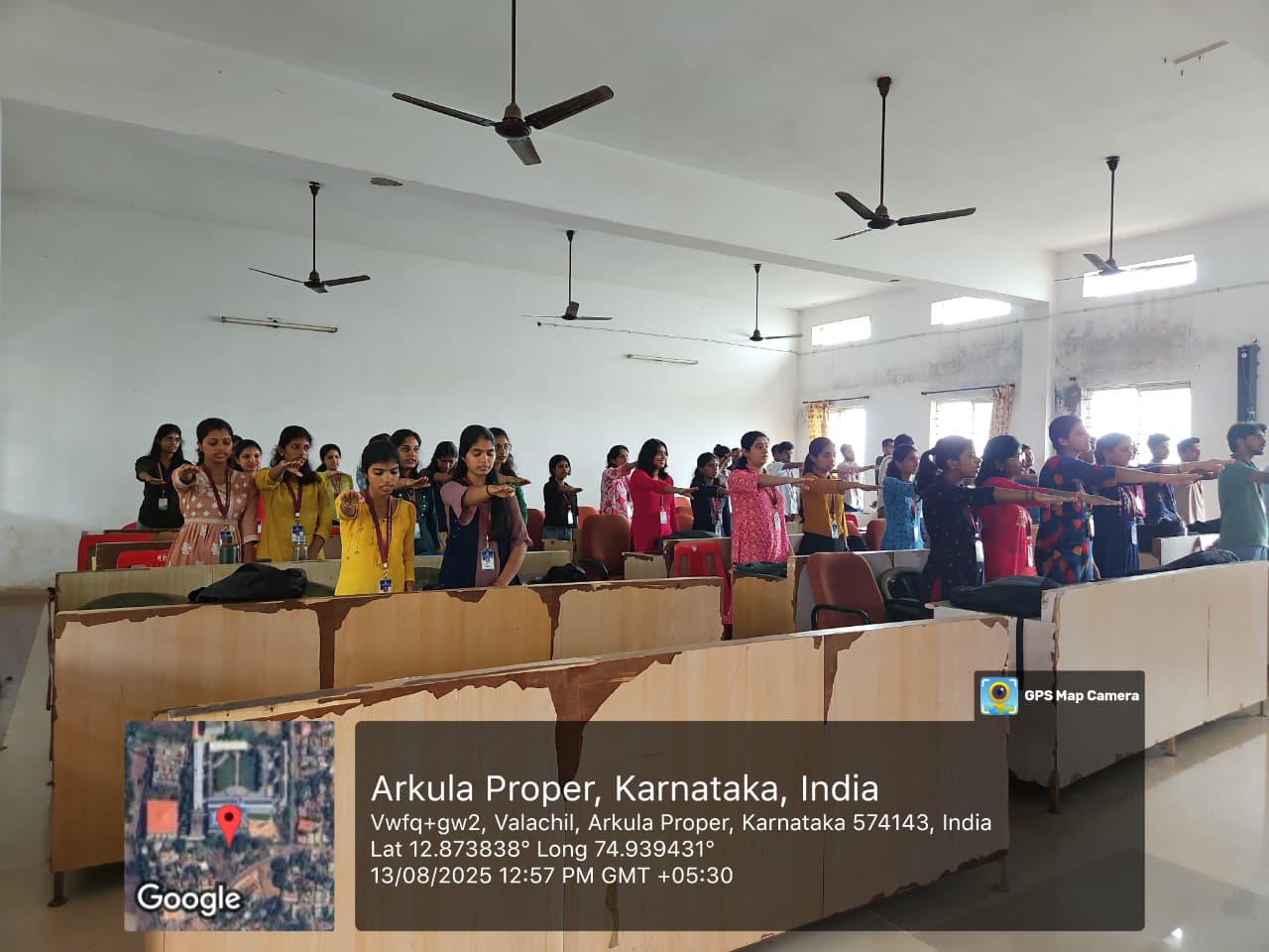 On August 13 2025 under the National Service Scheme NSS the Association of Information Science and Engineering AISE and Computer Science and Design ACODE the Department of ISE and CSD organized an awareness and pledge-taking program as part of the nationwide Nasha Mukth Bharath Abhiyan. The initiative aimed at creating a drug-free India by educating and inspiring the younger generation to lead healthier lives. The program highlighted the theme Say No to Drugs Yes to Life. Students and faculty members actively participated in the campaign which focused on spreading awareness about the harmful effects of drug abuse and the importance of living a balanced responsible lifestyle. A collective pledge was taken by all participants to stay away from drugs and to stand united against substance abuse. The session emphasized that youth are the driving force of the nation and their choices directly influence the growth of society. By promoting discipline responsibility and self-awareness the initiative encouraged students to inspire their peers families and communities to join hands in creating a drug-free environment. Such activities not only educate but also instill a sense of social responsibility among the student community reinforcing the values of unity and integrity. The event was supported by Prof Sudarshan K Head of the Department HOD ISE and CSD and coordinated by Prof Sowmya Prof Archana D Staff Advisor of AISE and ACODE and Prof Rakesh Mallya College NSS Coordinator. Their teamwork and dedication ensured the smooth execution of the event. The awareness and pledge-taking program under Nasha Mukth Bharath Abhiyan proved to be a meaningful step in educating students about the dangers of drug abuse and the importance of leading a healthy life motivating participants to become ambassadors of change spreading the message of a drug-free society within and beyond the campus.