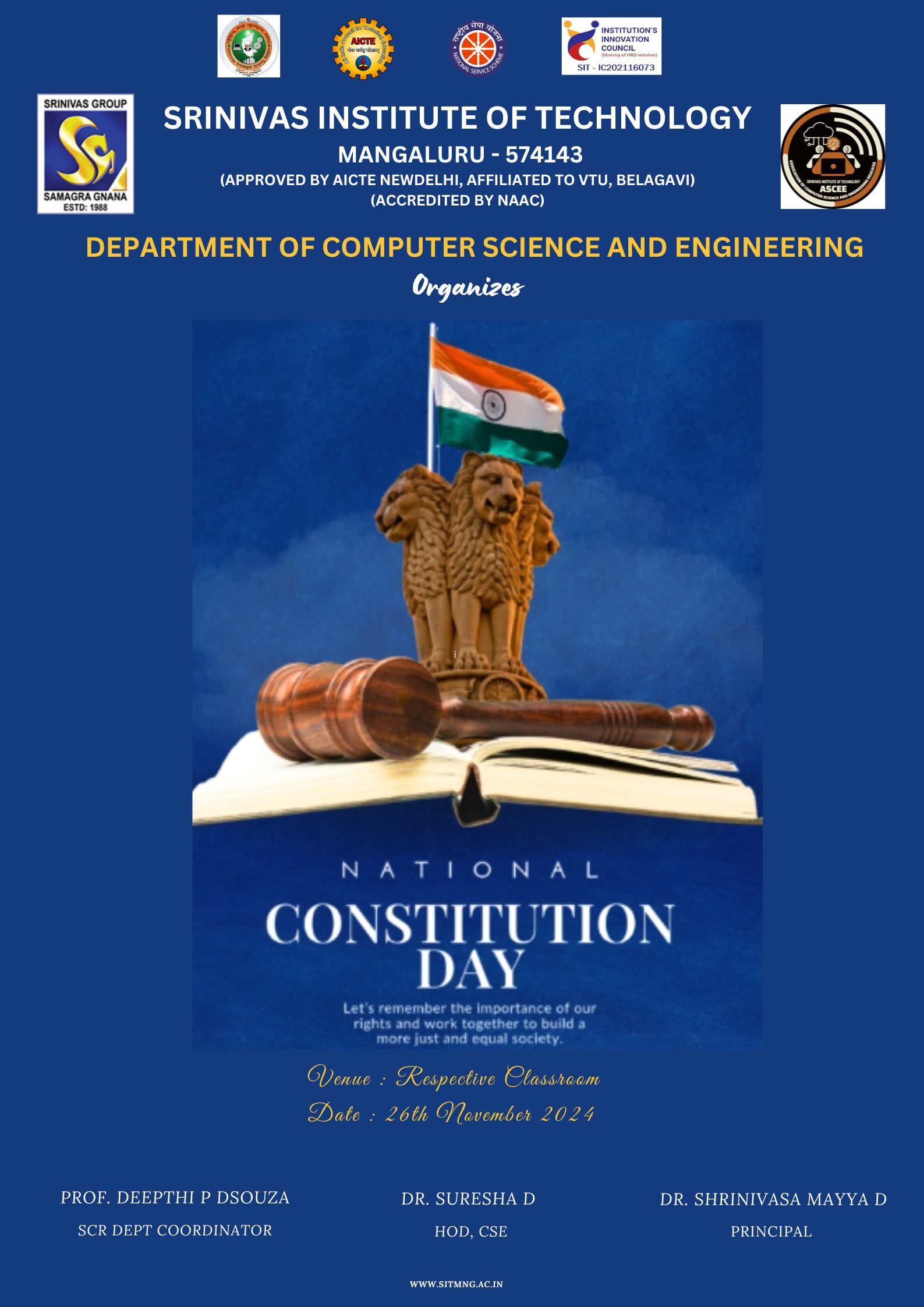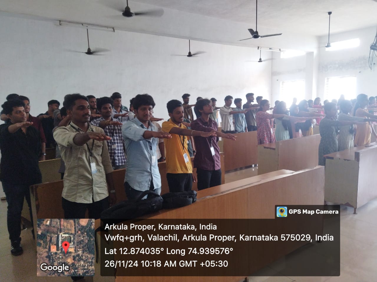 “SAMVIDHAN DIWAS” The Department of Computer Science and Engineering (CSE) observed Samvidhan Diwas on November 26, 2024. Students recited the Preamble in three languages, emphasizing Indias unity and diversity. Dr. Suresha D. addressed the students, highlighting the Constitutions relevance and spirit. The event was coordinated by Prof. Deepthi P. Dsouza and the CSE faculties. #sitmng #NSS #Constitutionday #samvidhandiwas #CSE #National #India