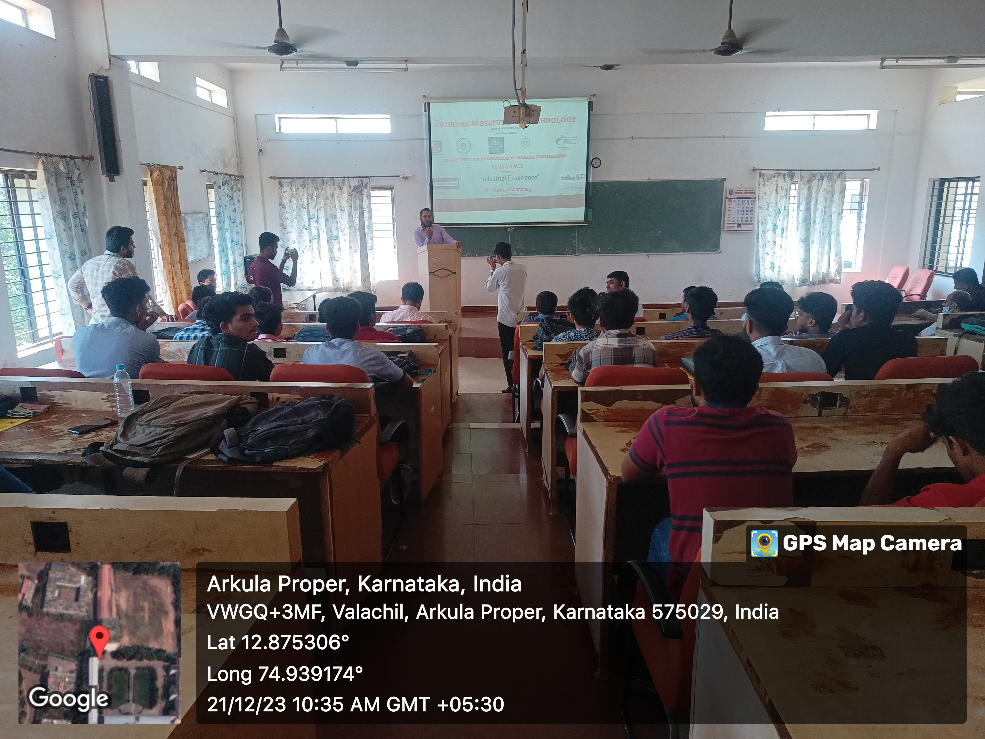 Department of Artificial Intelligence and Data Science organised Association Inauguration of Artificial Intelligence Data Science Educatee(AADE) on 18th December 2023. Mr Rakshan B.N, Software Engineer at HashedIn by Deloitte, was the chief guest. The function was presided by Dr. Shrinivasa Mayya D, Prinicipal, Srinivas Institute of Technology, Prof. Nagaraja Hebbar N, Head of AI&DS department and Prof. Sneha Bose, Faculty Coordinator, Department of AI&DS. Mr. Ashwin V, President of AADE gave the welcome address, Ms. Mokshashree MN from 3rd year AI&DS introduced the chief guest to the gathering. Mr. Rakshan spoke on GenAi, briefed it's importance, and educated the students about the same. Prof. Sneha Bose read out the action plan for the academic year 2023-24. On this auspicious occasion, badges were issued to office bearers of AADE for the academic year 2023-24.Dr. Shrinivasa Mayya D, the Principal gave the Presidential Address. Prizes and certificates were issued to academic toppers, winners of various events, participants, and event organizers. Mr. Gagan K Sanil, Secretary, AADE gave vote of thanks.Mr. Madhav Shanbhag, Customer Relation officer, JSW Paints PVT Ltd, who was the chief guest for the inaugural function of Srinivas Advanced Manufacturing and Research Theatre (SAMARTH), of Mechanical engineering department, Srinivas Institute of Technology, Valachil, Mangaluru, had an interaction session with students after the function. An interaction session with the resource person was organized by All Students Mechanical Association (ASMA). Mr Sathyaprakash A, Staff coordinator of ASMA and Project manager of SAMARTH gave the introduction about the resource person.Mr. Madhav who is also an alumnus of the college recalled his moments during the college days. During the interaction with the students he shared his experience, struggle and success he faced during his journey in the industry. He urged the students to make use of the time available and work towards their dreams. He also gave an informative talk on what is going on in the industry. Mr. Madhav also cleared the various doubts of the students regarding the qualities, technical abilities required, Challenges in the industry.