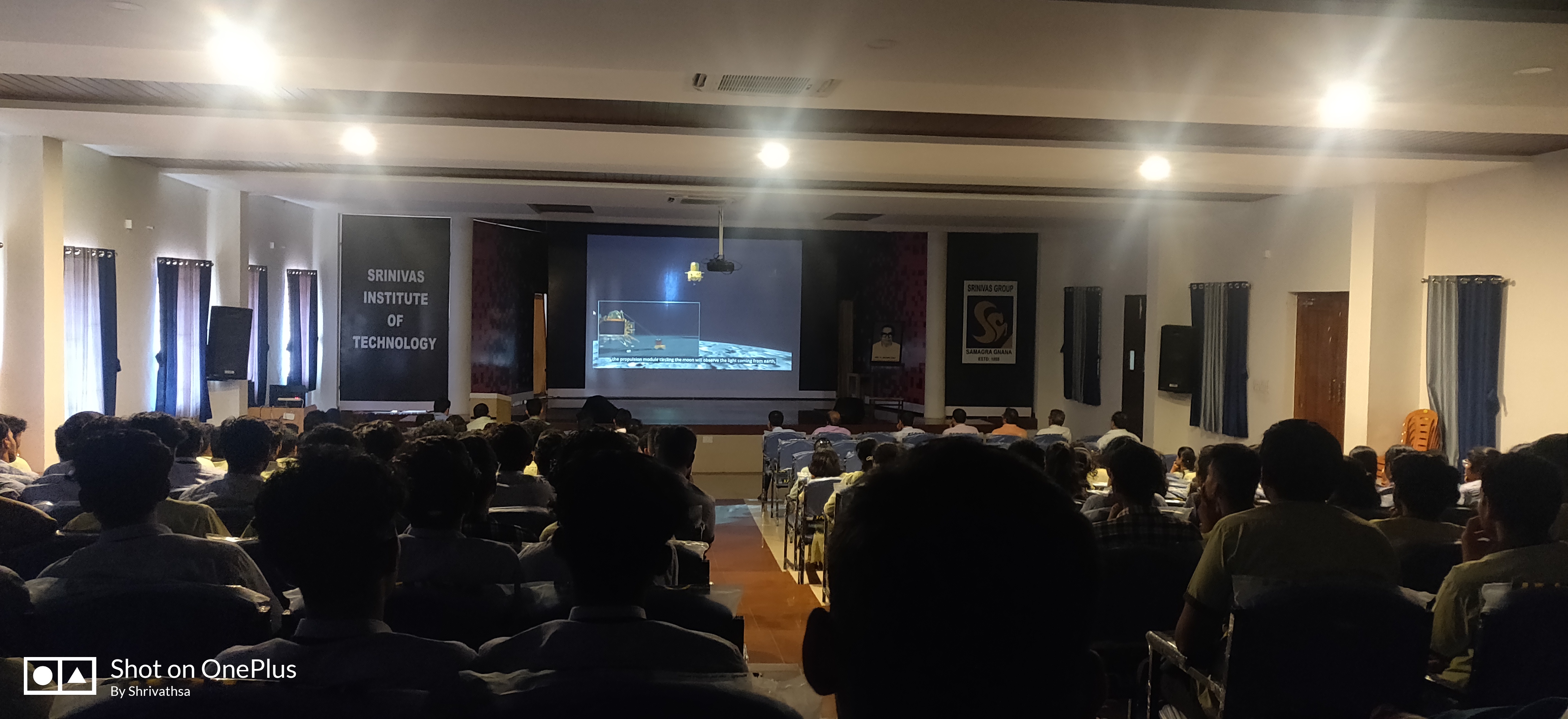To celebrate the launch of Chandrayaan-3, the Dept. of Aeronautical Engineering organised a live feed of the launch in the A/C seminar hall on 14-07-2023 at 2:00 PM. Students across the branches participated in the event and applauded the success of the scientists at ISRO. Following the event, the students were motivated and inspired to achieve success in their respective fields. The programme was also attended by faculties and HoDs from various departments. Prof. Shrivathsa, Prof. Prakash ST and Prof. Praveen Shenoy coordinated the event. The event was successfully completed with the support of faculties of All the Department, HODs, Principal and Management.