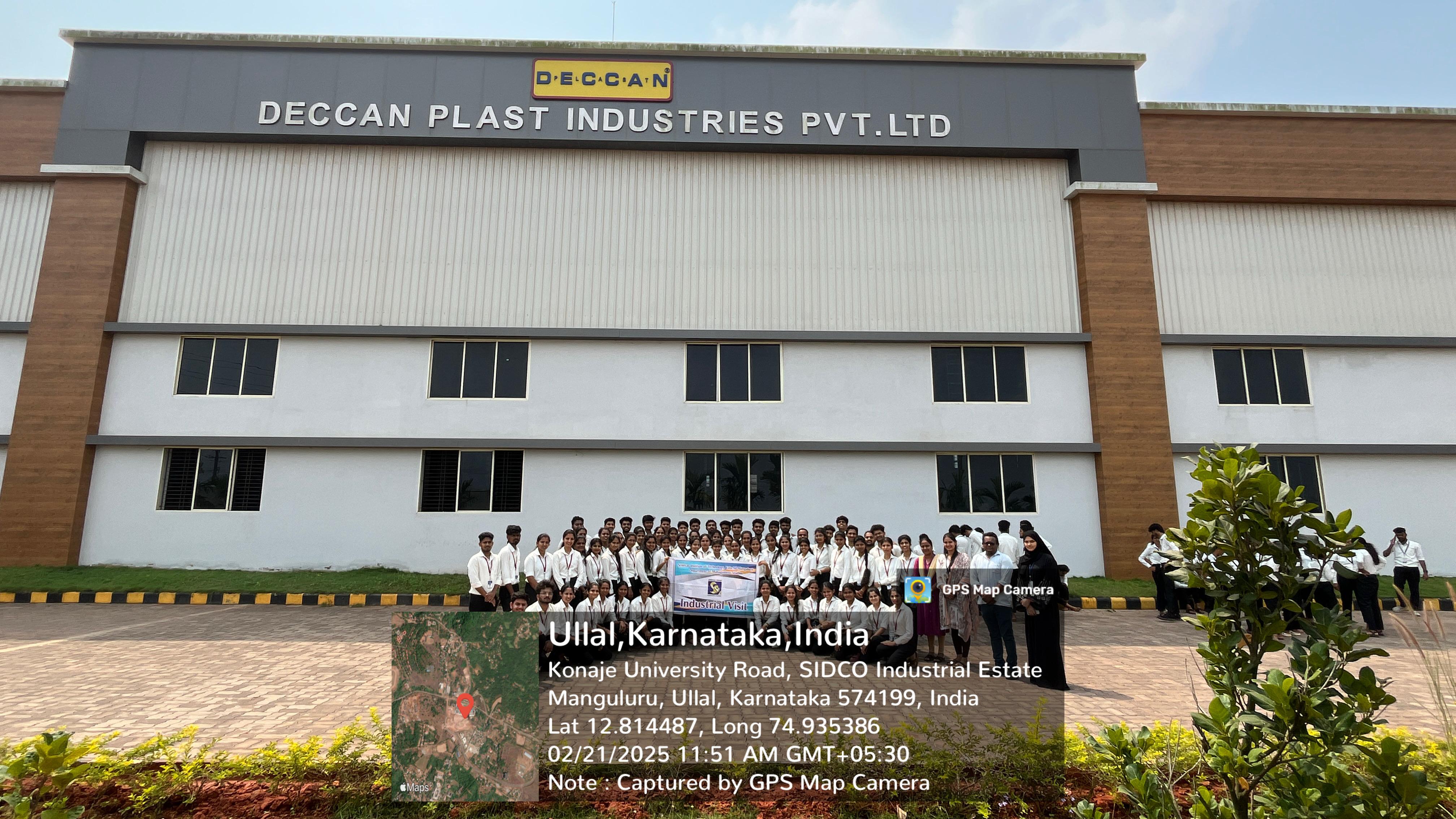 Mangaluru, February 21, 2025: The Department of MBA at Srinivas Institute of Technology, Valachil, Mangaluru, in collaboration with the Institution’s Innovation Council (IIC), organized a Field/Exposure Visit to Deccan Plast Industries Pvt Ltd on 21st February 2025. A batch of 103 third-semester MBA students visited Deccan Plast Industries Pvt Ltd, a leading plastic manufacturing company known for its cutting-edge technologies and high-quality products. The objective of this visit was to offer students practical exposure to manufacturing processes, operational strategies, and real-world business practices. During the visit, students toured the facility and observed various production processes, including injection molding, extrusion, and plastic product assembly. This hands-on experience allowed them to relate theoretical business management concepts to practical applications in the manufacturing industry. In addition to the plant tour, students engaged in interactive discussions with the company’s management team. These discussions provided valuable insights into business strategies, marketing approaches, corporate leadership, and workforce management in the manufacturing sector. Students also had the opportunity to ask questions about operational challenges and the role of innovation in maintaining a competitive edge in the industry. The visit proved to be an enriching experience, equipping students with a deeper understanding of industry practices and reinforcing key business concepts learned in their academic curriculum.