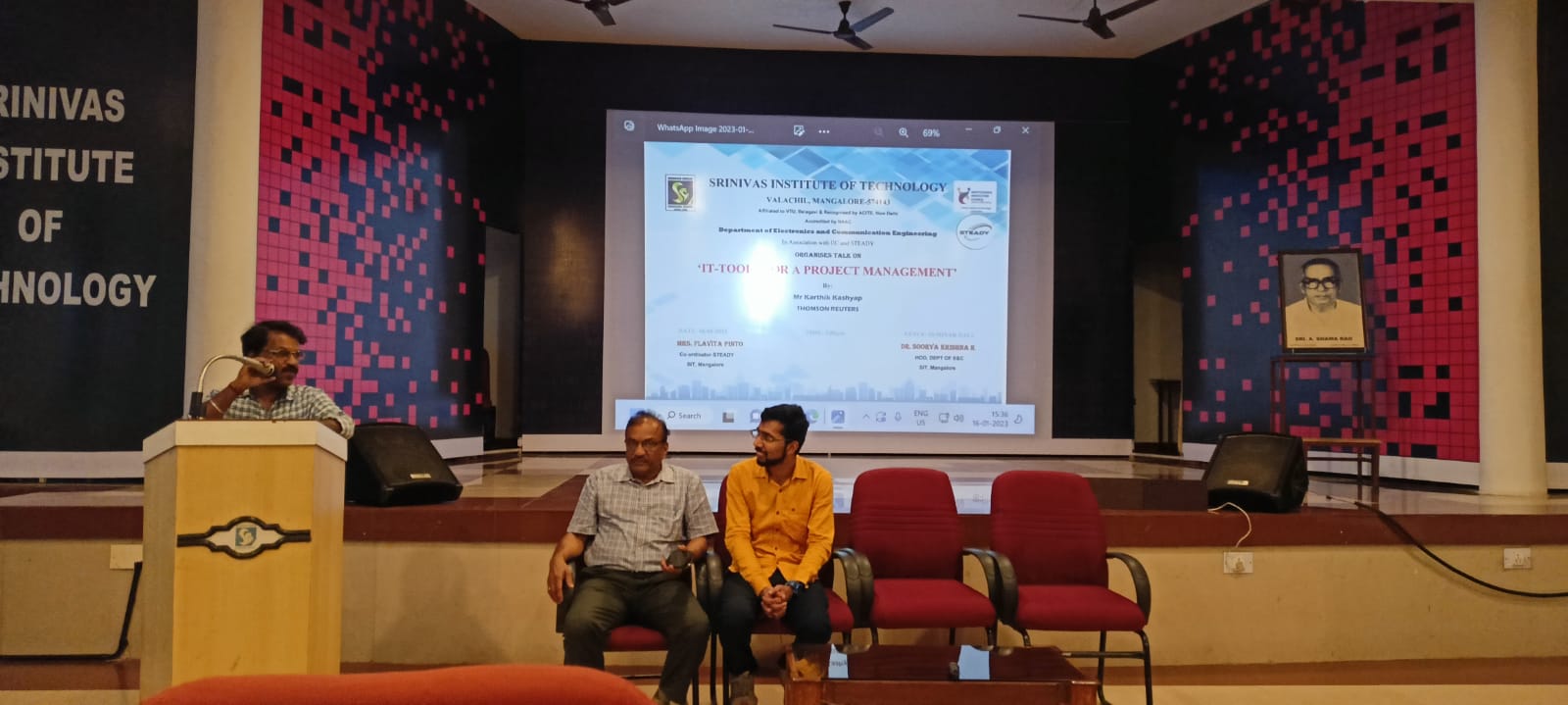 The student association “STEADY” of the Department of Electronics and Communication in association with SIT IIC organized a talk on “IT-Tools for a Project Management” on 16-1-2023. Mr. Karthik Kashyap from Thomson Reuters, Bangalore was the Resource person for the program. He spoke on different tools which are used mainly in the software industry. He told the importance of studying these tools and the advantage when the students will go to the interviews. All 100 EC students participated in this program and interacted actively.