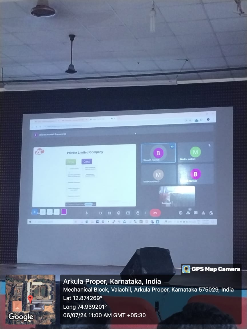 - • Webinar on "Your Start-Up Success: Ethical and Legal Essentials," held on July 6, 2024, organized by EDP CELL & Incubation and Startup Cell at Srinivas Institute of Technology, Mangaluru, featuring Mr. Bharath H. C., Managing Director of ACRANTON TECHNOLOGIES PRIVATE LIMITED, Davanagere.