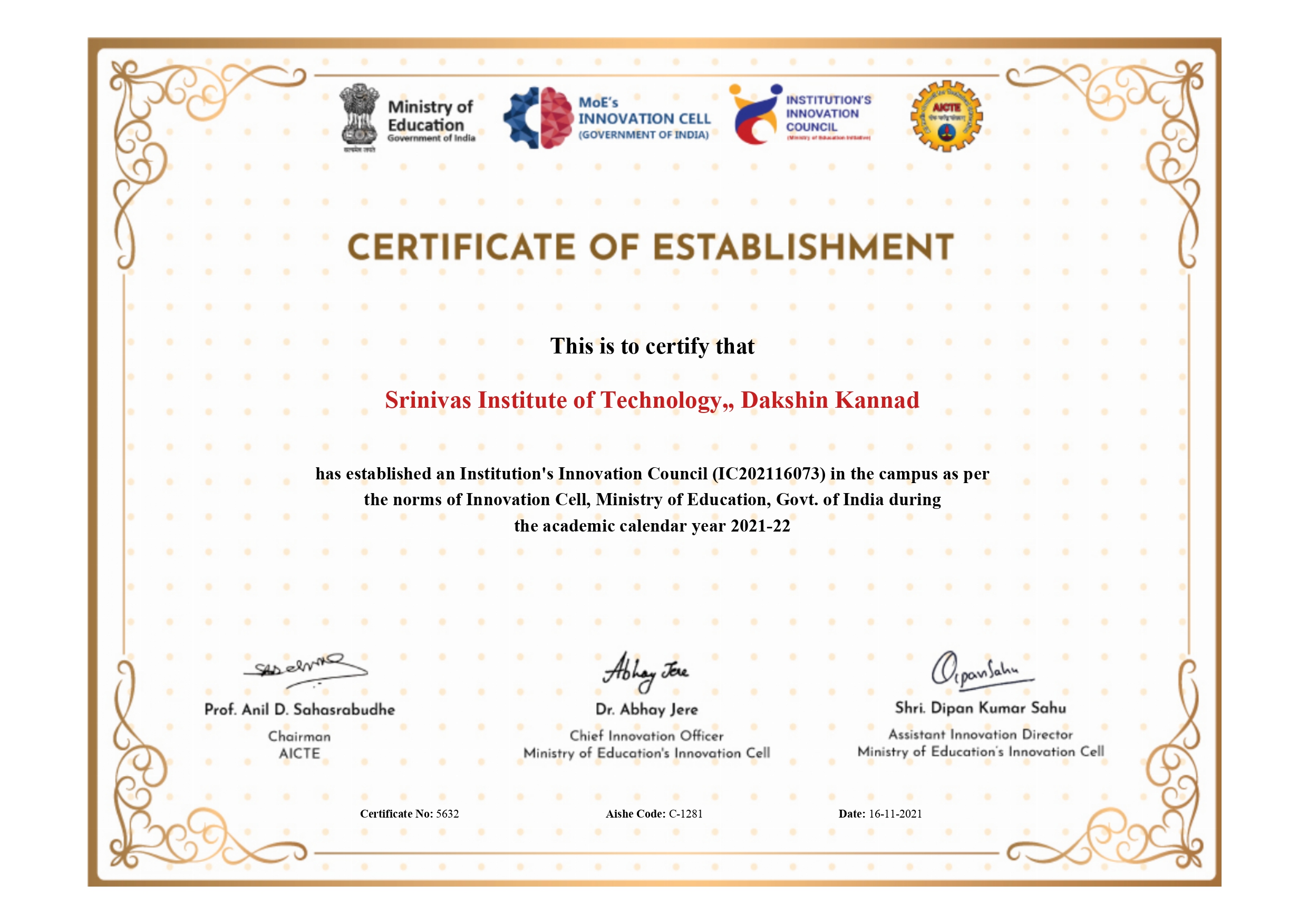 The Institution's Innovation Council (IIC) at Srinivas Institute of Technology (SIT), Mangaluru, was