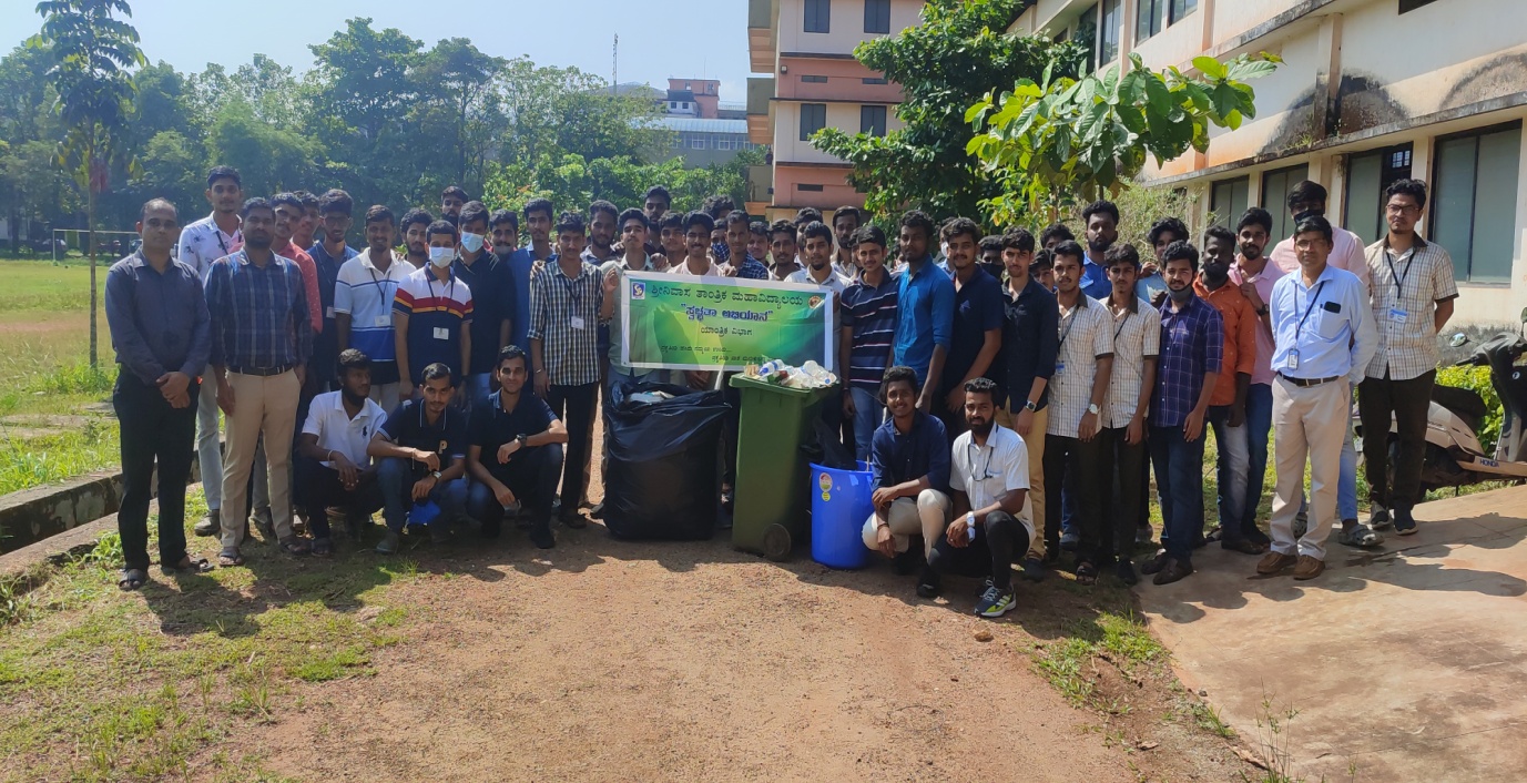 The ASMA- students association of Mechanical Department & NSS unit jointly organised a campus cleaning programme on the theme “CLEAN INDIA-PLASTIC FREE CAMPUS CAMPAIGN” on occasion of “AZADI KA AMRIT MAHOTSAV-INDIA@75” on 25/10/2021. All the mechanical students and NSS Volunteers were engaged in this cleaning programme.