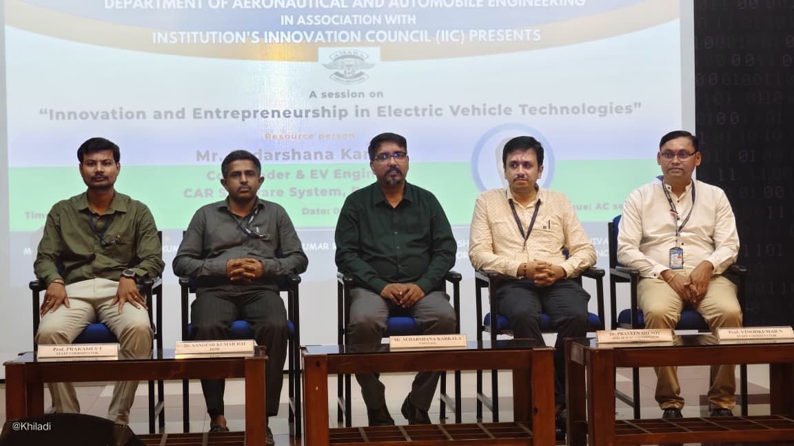 On August 8, 2025, the Department of Aeronautical and Automobile Engineering at SIT, in association with the Institution’s Innovation Council (IIC), organized a session on 'Innovation and Entrepreneurship in Electric Vehicle Technologies' conducted by Mr. Sudarshana Karkala.