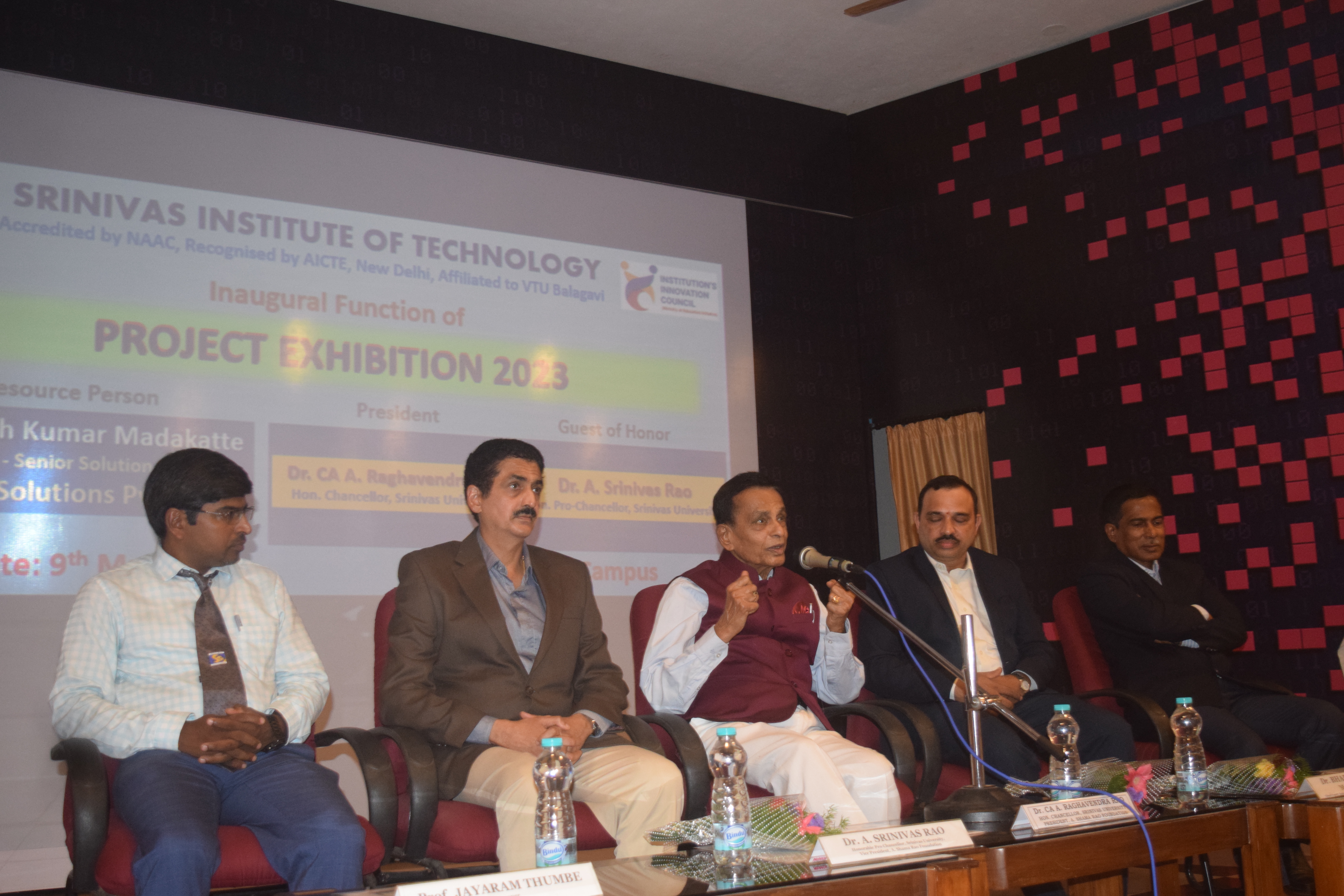 Inauguration of Student Project Exhibition– 2023 of Srinivas Institute of Technology, Mangaluru, held on 9th of May 2023. Dr. CA A. Raghavendra Rao, Chancellor, Srinivas University and president of A Shama Rao Foundation presided over the inaugural function.