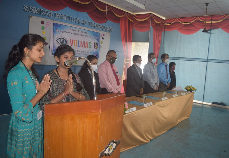 Srinivas Institute of Technology’s MBA students association “VOLMAS” –Valedictory function and final year student’s farewell function was held on 17.08.2021. Dr.Shrinivasa Mayya D, Principal of the college presided over the function, speaking on the occasion he emphasized the importance of education as well as explained how to develop various management skills. Ms. Dechamma B B, Vice President of VOLMAS welcomed the gathering, Ms. Nethravathy P K, Secretary of VOLMAS read association’s Annual report.