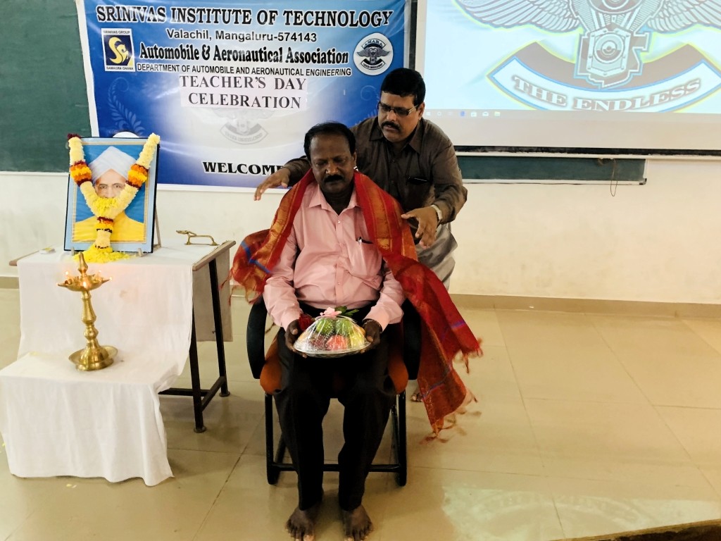 Department of Aeronautical Engineering in Association with “AMARA” - Automobile and Aeronautical Association, Srinivas Institute of Technology, Mangaluru celebrated Teachers day on September 05, 2019. Mr. M. Sheshagiri, Vice Principal, Vidyarashmi First Grade College, Savanoor, was the chief guest and he emphasized on the importance of good teachers on society to transform the nation as number one in the world. He also mentioned the transformation of teaching from past to present.