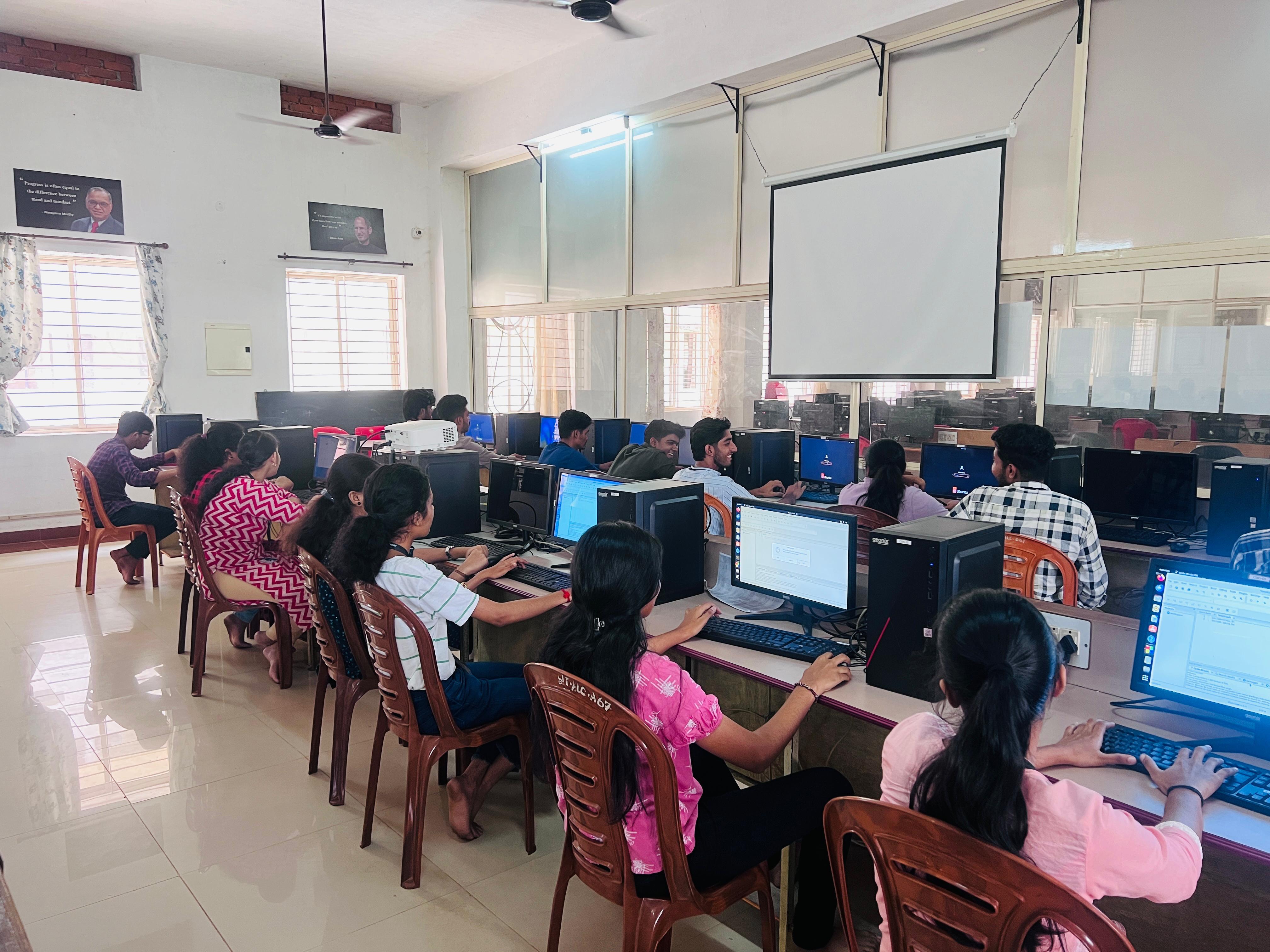 The department has well established computer laboratories with required number of computer terminals connected to Windows/Linux servers. All the necessary software’s required to carry out regular laboratory work and project work are available in the department. These facilities are exclusively for undergraduate students of Computer Science & Business Systems. 100 Mbps leased line connectivity for the Internet access is also available.
