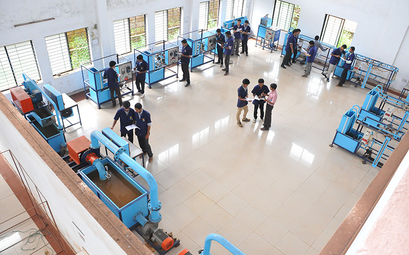 Francis turbine test rig, Kaplan turbine test rig, Pelton wheel test rig, Gear Pump test rig, Impact of jet on vane test rig, Friction in pipes test rig, Single stage centrifugal pump test rig, Multi stage centrifugal pump test rig, V-notch, Venturimeter, Orificemeter, Air Compressor