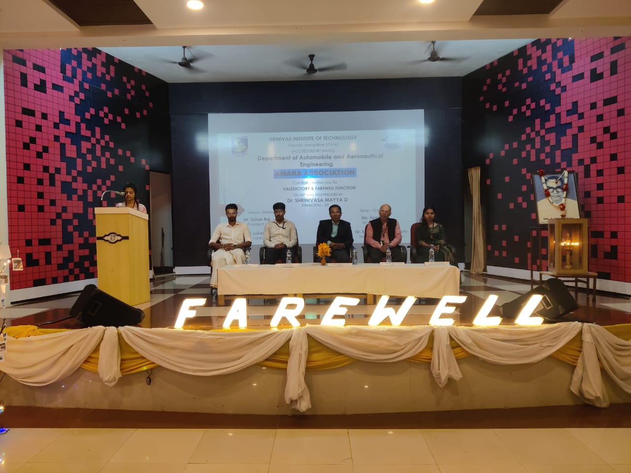 The valedictory function of the Automobile & Aeronautical Association (AMARA) and the farewell function for the final year Automobile & Aeronautical Engineering students was organized by the department of Automobile & Aeronautical Engineering, Srinivas Institute of Technology, Mangaluru, on 29-05-2023.
