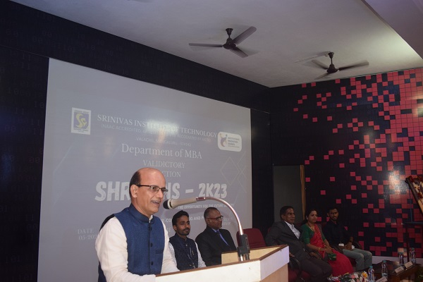 Two days National Level Management fest Shriyans - 2023 was organized by MBA department of Srinivas Institute of Technology, Valachil Mangalore on 23rd and 24th May 2023. 520 students from different MBA and UG colleges participated in the fest. Mr. Muralidhar G Shenoy, Zonal Head Canara Robeco Mutual Fund, Mangaluru was the chief guest for the valedictory function on 24th May 2023. Cash prize, Trophies and certificates to the winners of various colleges were distributed by the dignitaries.