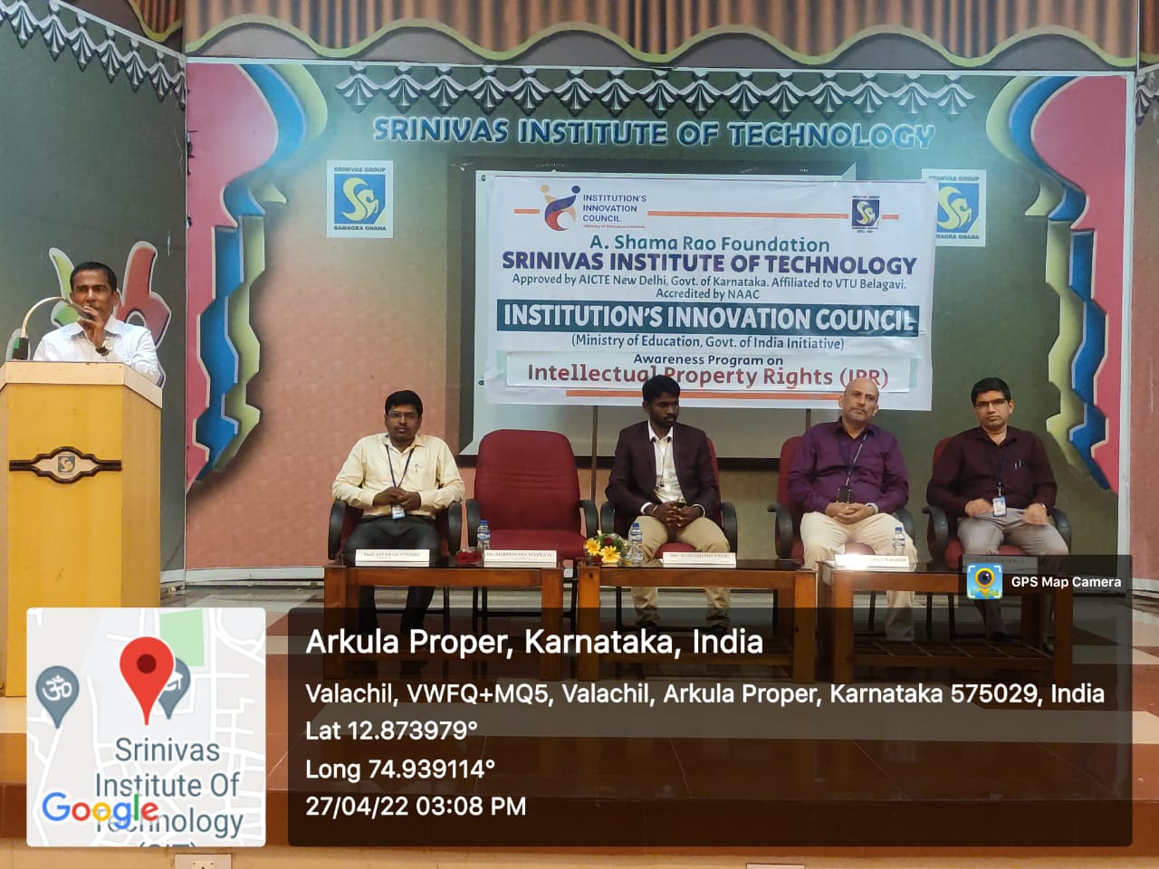 Institution's Innovation Council (IIC) in association with the Intellectual Property Rights (IPRs) Cell has organized an Awareness program on Intellectual property rights (IPRs) under Kalam Program for Intellectual Property Literacy and Awareness (KAPILA) in association with AICTE and National Intellectual Awareness Property Mission (NIPAM) on 27th April 2022 at the institute's Seminar hall