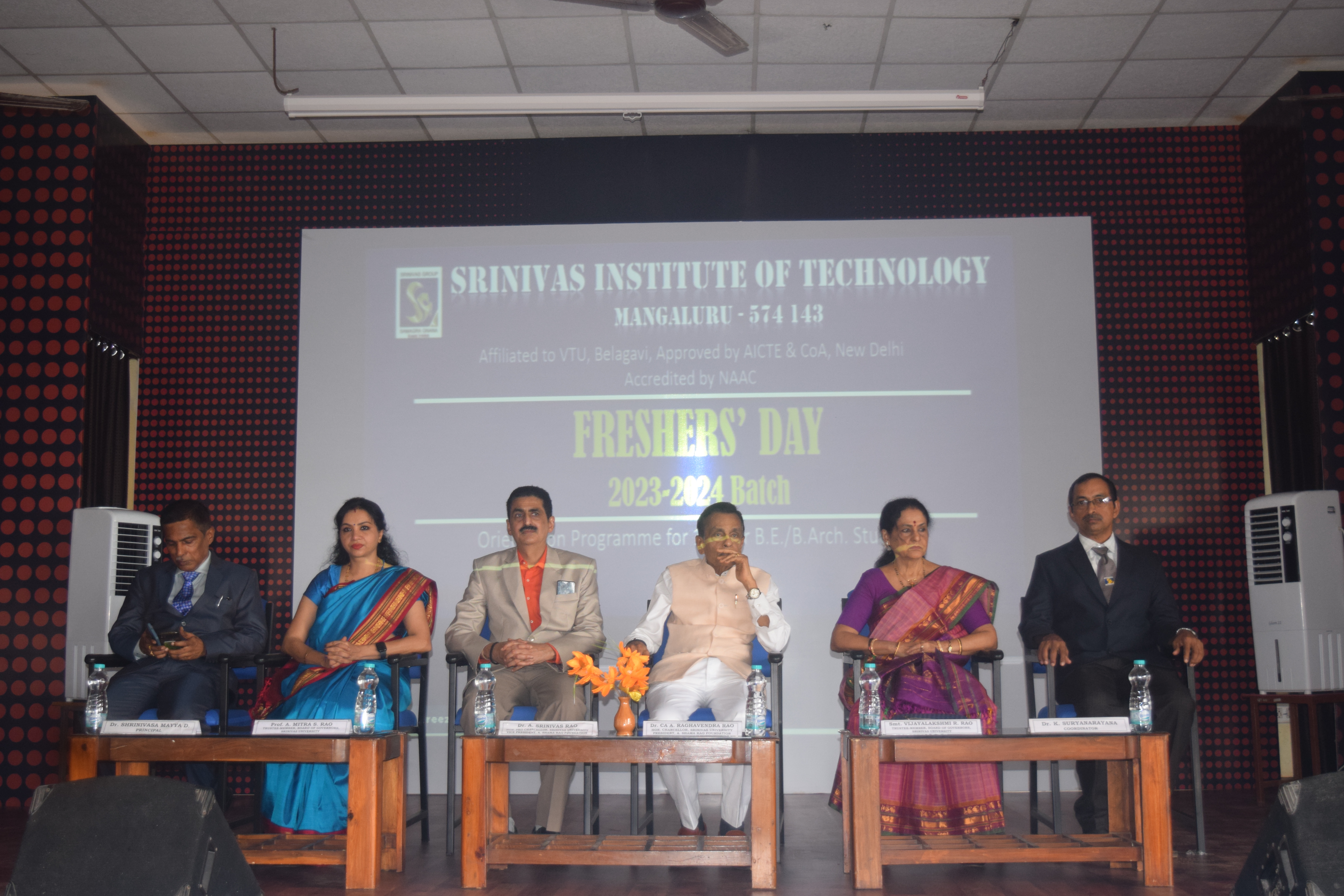 Srinivas Institute of Technology organized a Fresher’s Day/ Orientation Program for the 1st Year B.E./B.Arch students on 4th September 2023. Dr CA A Raghavendra Rao,Chancellor Srinivas University,President,A Shama Rao Foundation,Mangaluru in his presidential remarks said that the students should become leaders in their area of specialization.