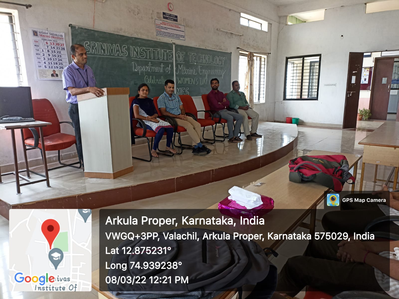Association of Integrated Marine Engineering Students (AIMES), Department of Marine Engineering of SIT, Magaluru celebrated Women’s day on 8th March, 2022. Prof. Vatsalya Praveen, Department of mathematics, Srinivas Institute of technology was the chief guest. In her address, Prof. Vatsalya Praveen brought out the role of women in family and society. She said that women’s day celebrates the achievements women in various fields and also expresses our respect, appreciation and love towards the most powerful gender. The inaugural note was delivered by Prof Chandra Jogi In-Charge HOD, Marine Engineering Department. He accented the importance of this day by saying that the celebration is being done only because no other gender possess such enormous attributes.