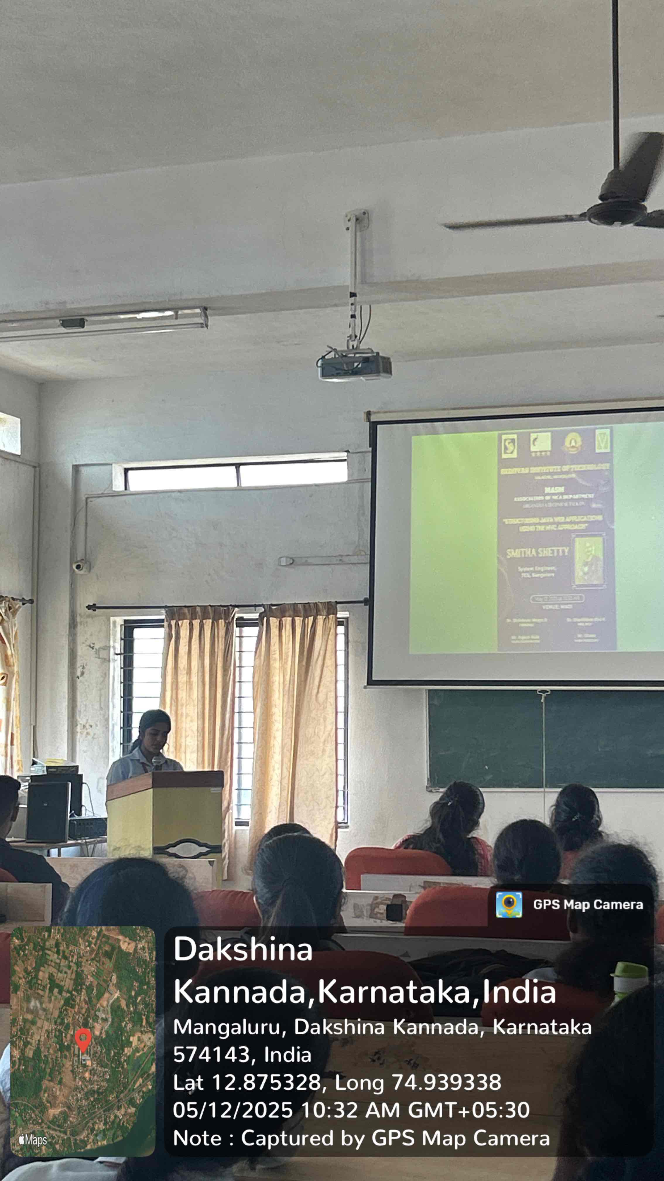 The Department of MCA conducted a technical talk on 12th May 2025, on the topic 'Structuring Java Web Applications Using MVC Approach', presented by Ms. Smitha Shetty, System Engineer at TCS, Bangalore.