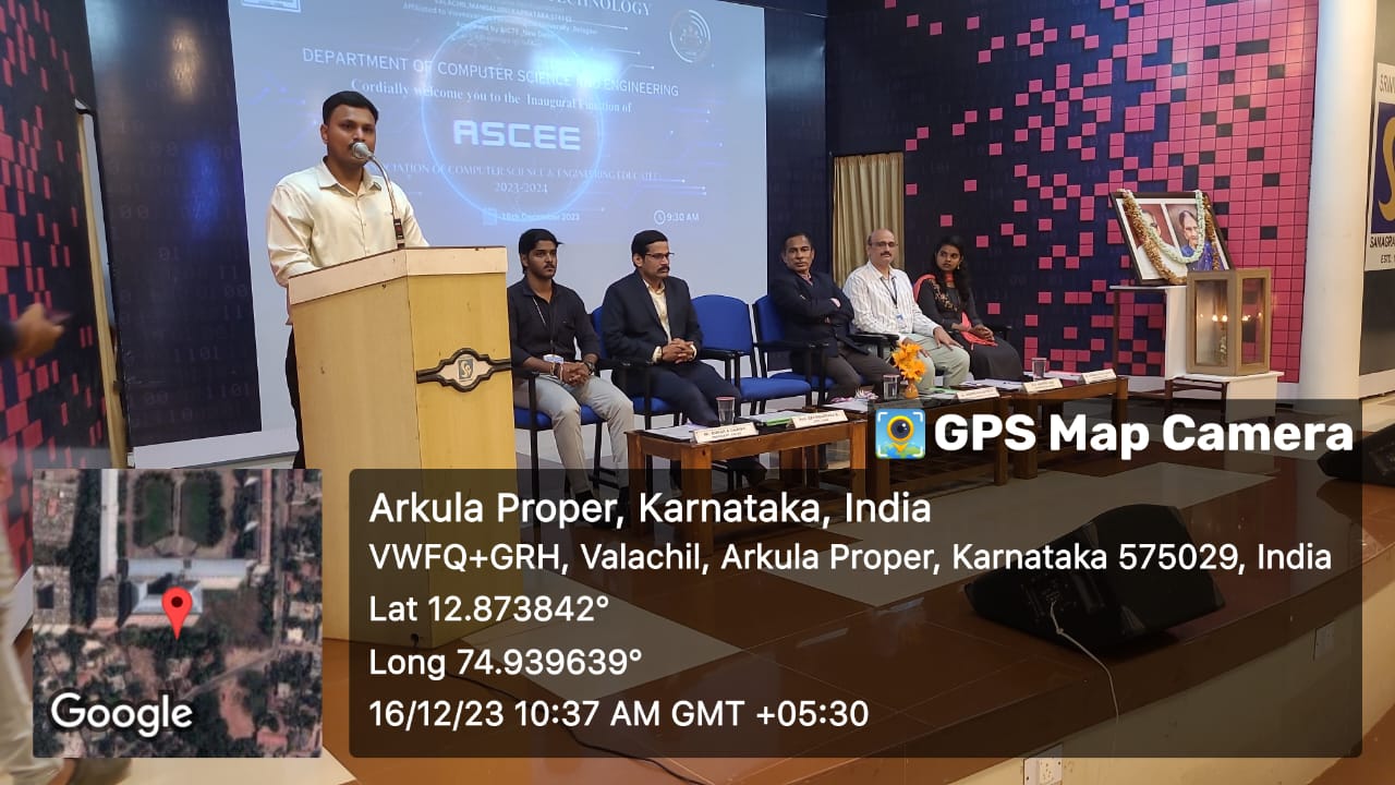 The inaugural function of the student Association of Computer Science and Engineering Department – ASCEE(Association of Computer Science & Engineering Educatee), of Srinivas Institute of Technology , Valachil, Mangaluru, for the year 2023-24 was held on Saturday 16th December 2023. Mr. Sanjay Kishor Sanil, Team Lead, TYDY, Bengaluru was the Resource Person.