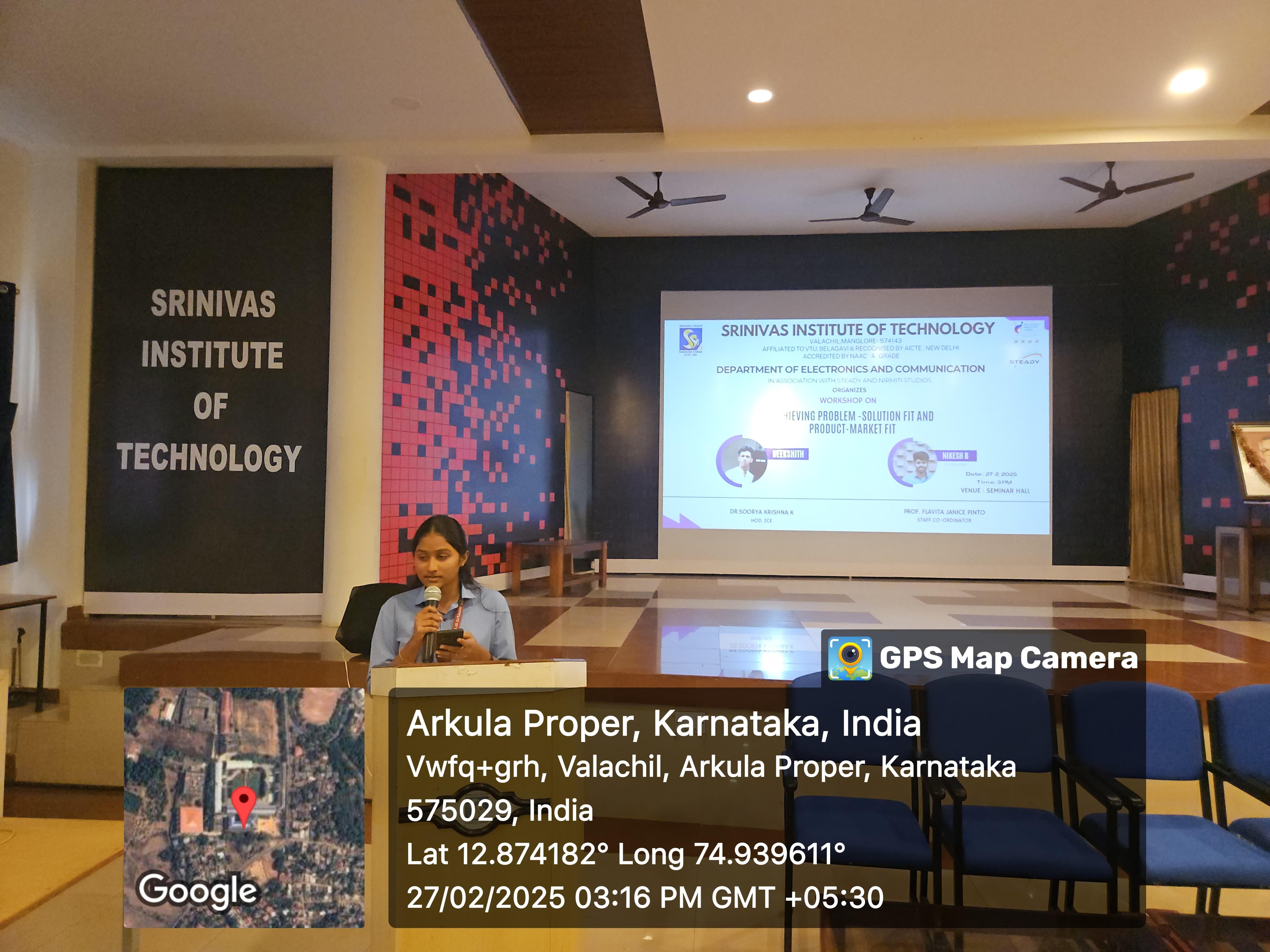 Department of Electronics and Communication Engineering SRINIVAS INSTITUTE OF TECHNOLOGY Valachil, Mangaluru WORKSHOP ON ACHIEVING PROBLEM-SOLUTION FIT AND PRODUCT-MARKET FIT The Department of Electro...