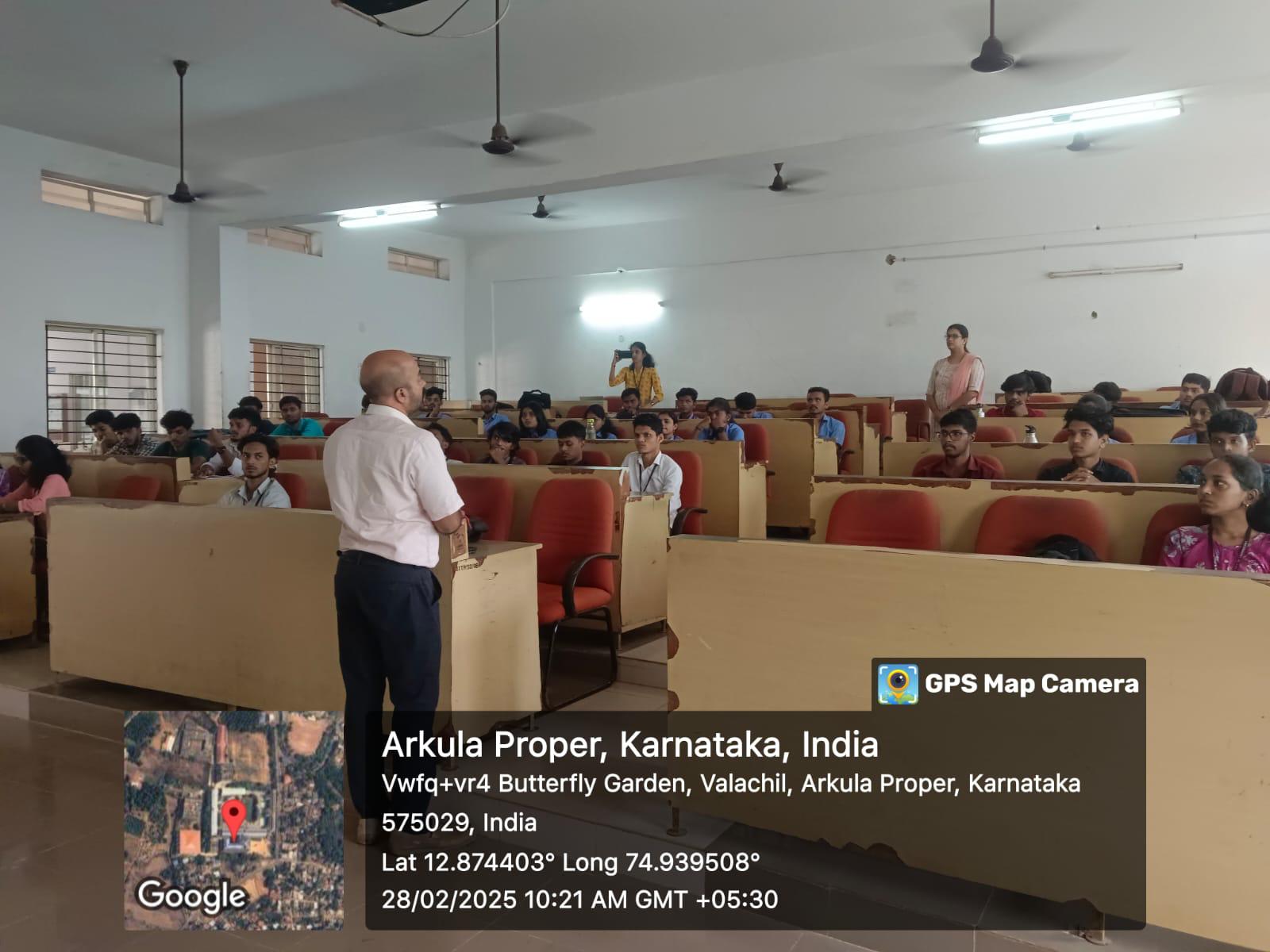 Mangaluru, February 27, 2025: The **Association of Artificial Intelligence and Data Science (AADE) and Association of Information Science and Engineering (AISE)**, in collaboration with the **Institution Innovation Council (IIC)**, organized an **Expert Talk on Placement** by **Dr. Dheeraj Hebri, Training and Placement Officer**. The session focused on career preparation, industry expectations, and essential skills for successful placements.