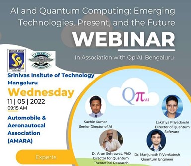 Automobile & Aeronautical Association, AMARA organized a webinar titled “AI & Quantum Computing: Emerging Technologies, Present and the Future” on 11/5/2022 in association with QpiAI, Bengaluru.