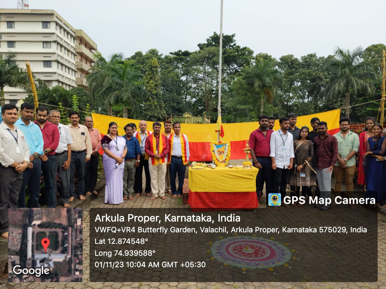The 68th Kannada Rajyothsava was celebrated with great pomp and splendor at S.I.T Campus, Valachil, Mangaluru on Wednesday 1st November 2023, with a tag line of “Tantrika Neleyalli Kannadada Ale”. Translated this means “Creating Waves with kannada in the domain of engineering and technology”.Dr. Shrinivasa Mayya D, Principal of the college inaugurated the programme by lighting the lamp and showering rose petals on Kannadambe –goddess Bhuvaneshwari-The reigning deity of Karnataka State. The state flag, the Pride of Kannadigas, a feisty one in golden yellow and vermilion was hoisted on the occasion which was followed by a rendition of state and national anthem. Today’s program was celebrated as a “Kannada Sambhrama 50” as the occasion of successful completion of the renaming Mysuru state as Karnataka State. “Hesarayithu Karnataka – Usiragali Kannada” with this tag line 5 different kannada songs were rendered as per the instruction of state Govt. College cultural committee Lalitaranga its SIT Raga- a music club supported for this program.The programme was coordinated by Mr. Sudheendra H.N., assistant professor, department of Mechanical Engineering and coordinator of “AISIRI” Kannada Sangha with the help of “AISIRI” Kannada Sangha members. More than 600 students and staffs (Teaching and Non-Teaching) witnessed the Rajyothsava Celebrations.On this occasion college speaker forum member Mr. Vishal anchored the program. All these beautiful moments were been captured by Creative club SIT.