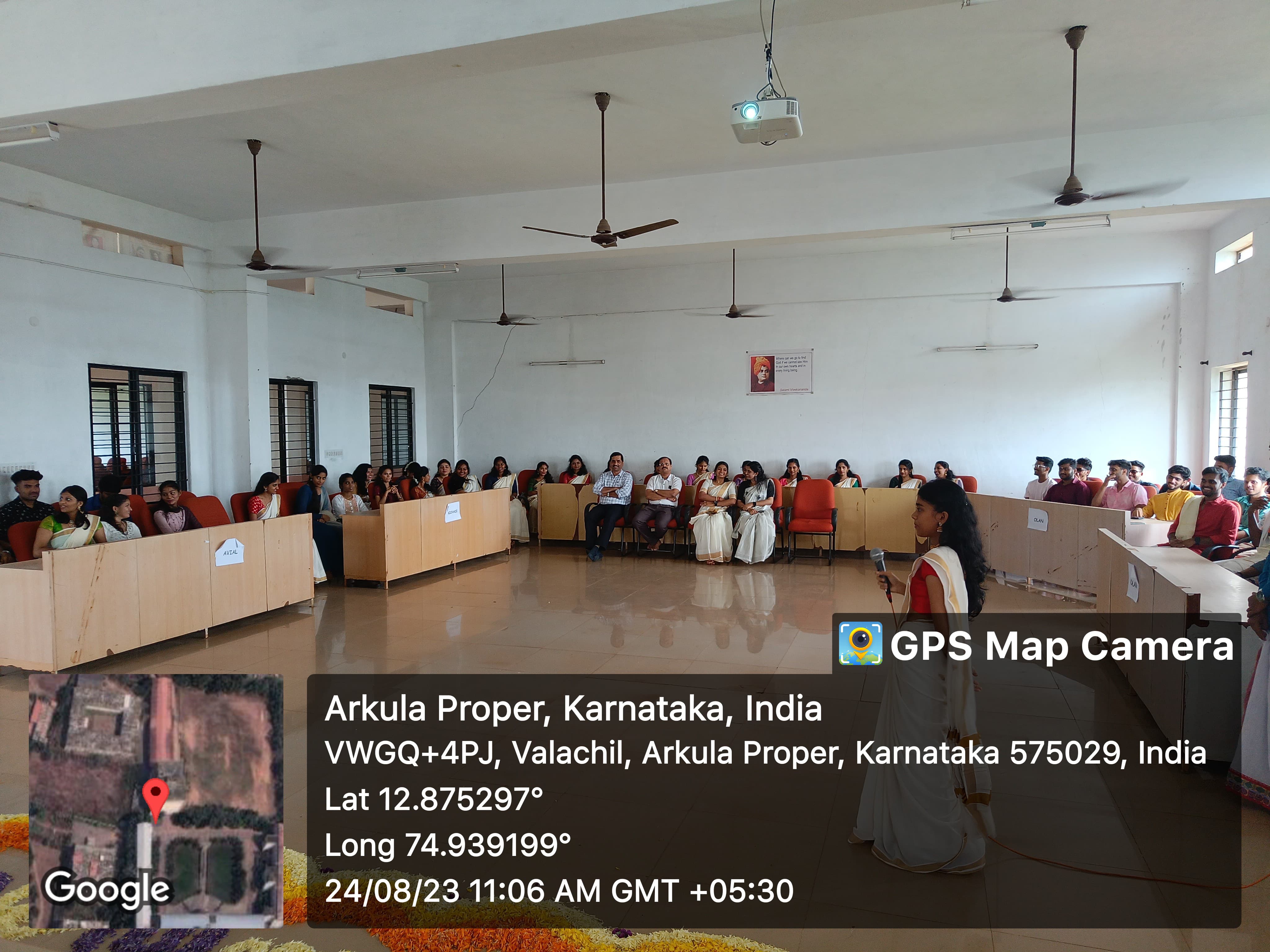 The department of MCA celebrated a vibrant and culturally enriching Onam Festival called 'KIDILONAM 2K23' on August 24, 2023. The event brought together students, faculty, and staff to commemorate the traditional harvest festival of Kerala.The Guests of the event were Dr.Shashidhar Kini K HOD of MCA department and Prof. Rajesh Naik Coordinator of the event and all the faculties and non-teaching staff of the department along with departmental students. The Onam celebration began with a warm welcome to all the gathering by Ms.Vaishnavi Coordinator of the event. This creates an atmosphere of unity and joy. Ms. Vaishnavi also gave a small introduction of about the mythology and stories associated with Onam.The classes are decorated and the venue was adorned with vibrant floral arrangements and traditional "pookalam", which added a touch of authenticity to the ambiance. The decorations mirrored the spirit of Onam and created an inviting space for all participants. To capture the essence of Onam, the celebration included mesmerizing cultural performances. KIDILONAM 2K23 is organized by the team members Ms.Shreya Das G, Mr.Amal Babu, Mr. Shivan K, Mr. Arunkrishna, Mr. Ganesh Navada,Ms.Akhila PR, Ms.Archana and Ms.Vaishnavi. The celebrations filled with a variety of games and activities. Organizing committee framed 5 teams between the students. Teams names are Olan, Avial, Kalan, Pachadi, Kichadi. All the competitions are done between those five teams. All five teams enjoyed and participated in completions like flip tak toe, Kathikal, Cracker Crunch, stack the items, bounce the bomb, Kasera kali, lemon dash, Who am I ! Pyramid,Quick swipe. Winners are awarded with prizes.Finally vote of thanks given by Mr.Amal Babu and thanked everyone for their active involvement for the successful program