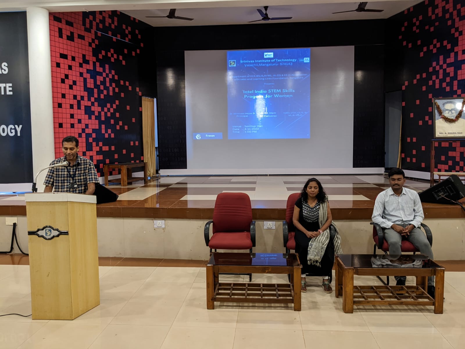 SIT IIC and Innovation Club along with the Department of ECE, CSE, ISE, AI-ML, AI-DS and EEE conducted workshop on “Intel India STEM Skills Program for Women”. The program was conducted on 4-11-2022 in Seminar Hall. Ms. Poornima Badiger was the resource person. This program is implemented by Learning Links Foundation and supported by Intel India and focuses on imparting training and capacity development on VLSI technology for female students pursuing their B.E. in colleges across Karnataka. Apart from technical training, students will also be enabled on soft skills like communication, teamwork, time management etc. to make them job-ready. The objective of the program is to offer women in STEM more opportunities to gain new-age technology skills that will make them workforce-ready for the future and increase the number of women in STEM who advance into leadership roles. Around 160 students actively participated in this program from different engineering streams. Association Department coordinators of ECE, CSE, ISE, AI-ML, AI-DS and EEE helped to organize this program.