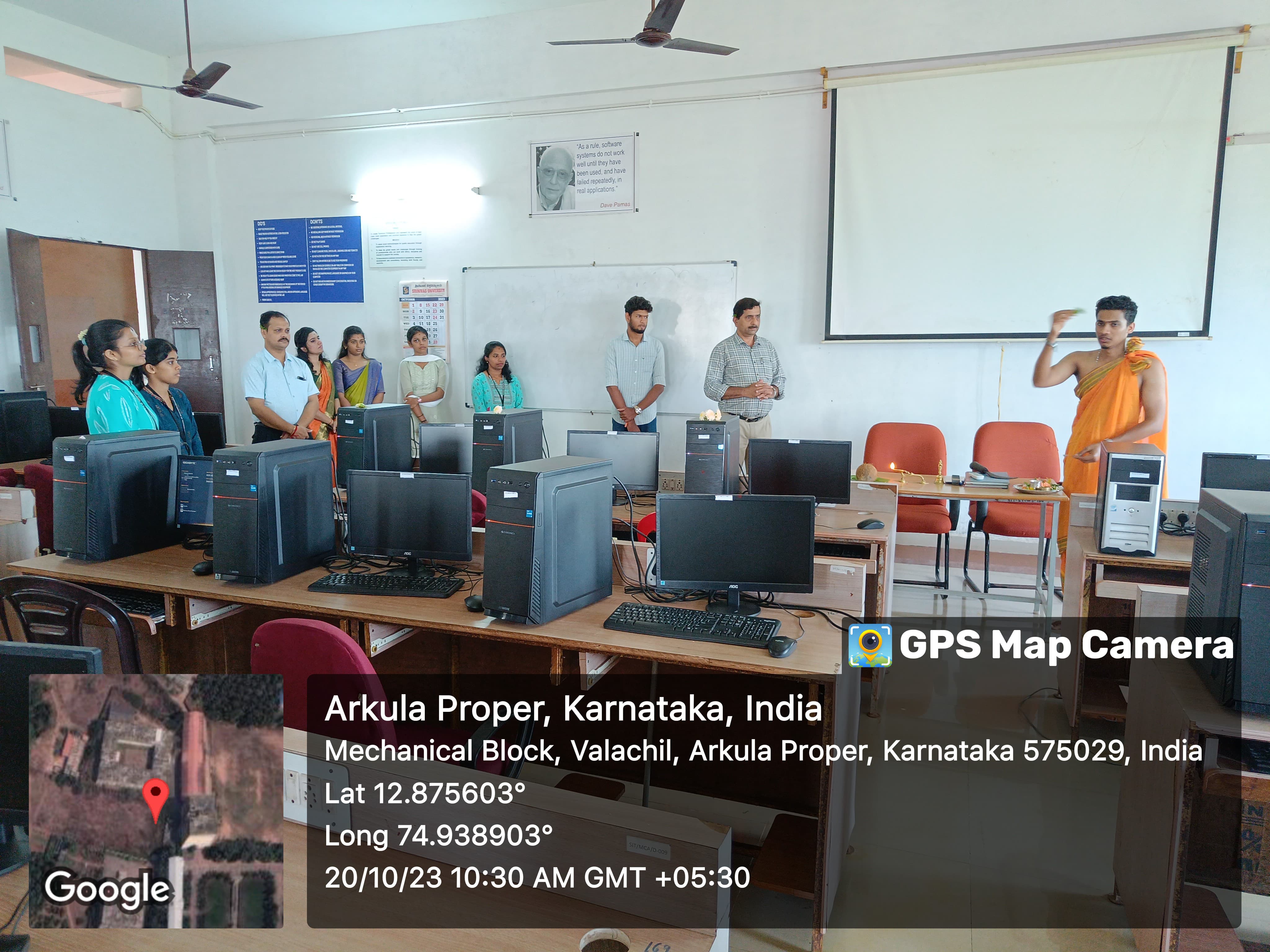 Sharada Pooja was celebrated by the students of the department of MCA of Srinivas institute of technology; Valachil on 20-10-2023 at M401.On this occasion, students participated in traditional attire. The function carried over with a traditional way, creating a rangoli with students and decorating the god with flowers sounds like a beautiful and traditional way to celebrate. It can foster a sense of community and cultural connection. Enjoy the festive preparations. Pooja was carried over and at the laboratory.