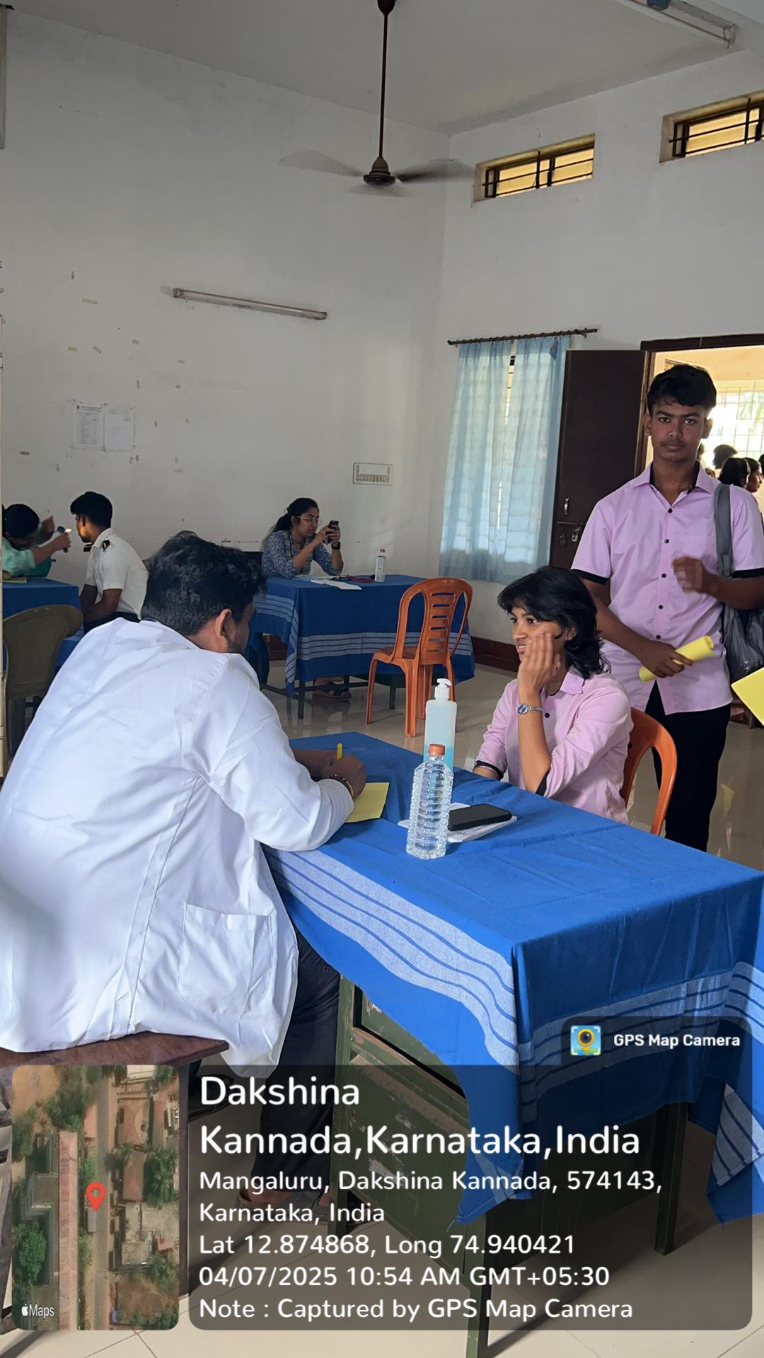 The **Department of Marine Engineering**, Srinivas Institute of Technology, Valachil, Mangaluru, in collaboration with **NSS** and **Srinivas Medical College, Mukka**, conducted a **Free Medical Health Check-up Camp** on **7th April 2025**. The initiative took place at the **Community Health Center** within the SIT campus. The primary aim of the camp was to **enhance health awareness** and extend **essential medical services** to the campus fraternity. The health screening encompassed consultations and diagnostic assessments in the following specialties: • General Medicine (including ECG and GRBS) • General Surgery • ENT • Dermatology • Orthopaedics The event witnessed enthusiastic participation from a **large number of students**, as well as **teaching and non-teaching staff**, who took full advantage of this free health service. The **medical team from Srinivas Medical College** ensured smooth coordination and professional care throughout the camp. The program was efficiently coordinated by **Prof. Sunil Prakash R**, AIMES Coordinator and **Prof. Rakesh Mallya**, NSS Coordinator with the support and guidance of **Dr. Lokesh V**, Head of Marine Engineering and **Dr. Shrinivasa Mayya D**, Principal of the Institute.
