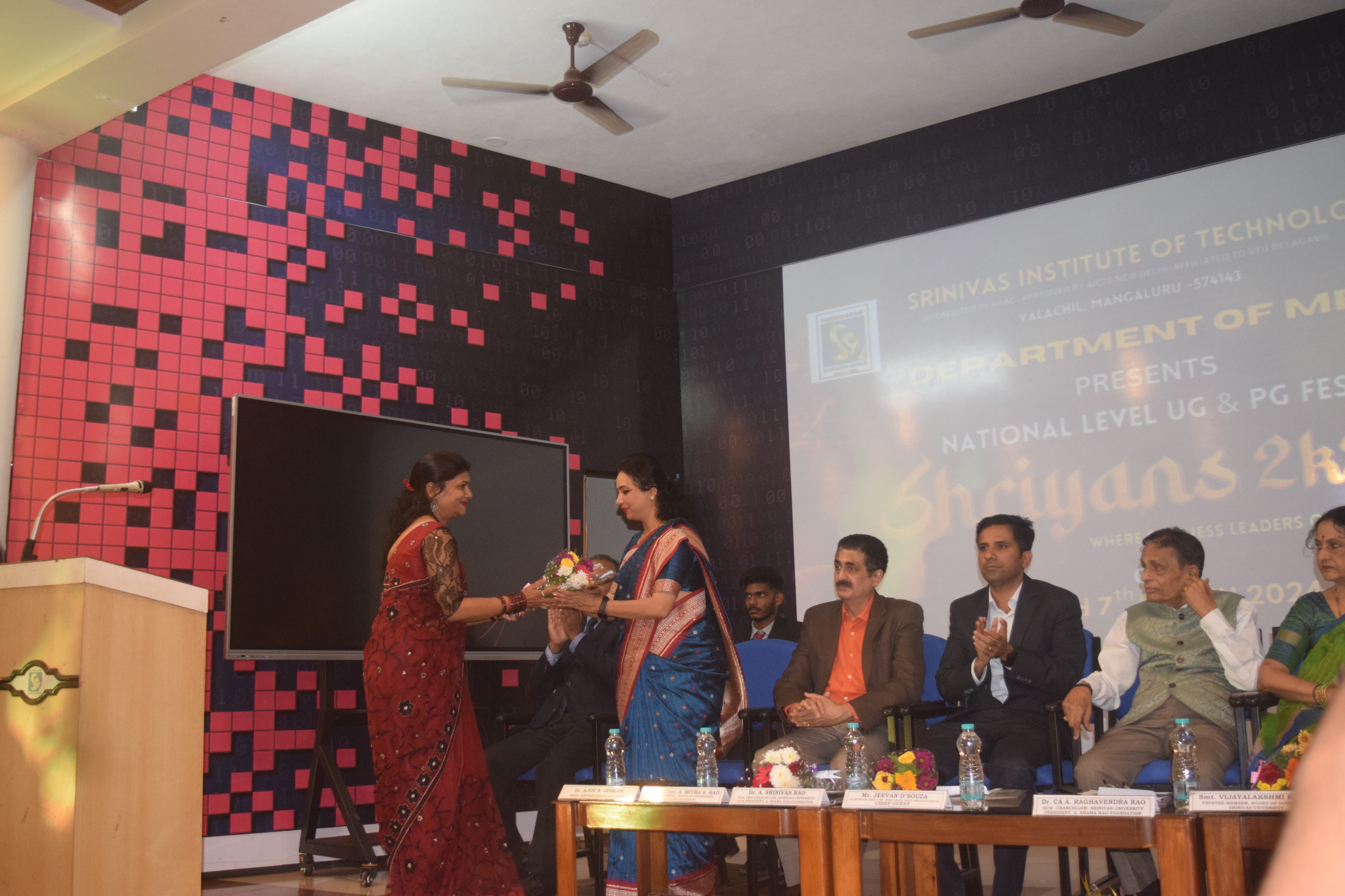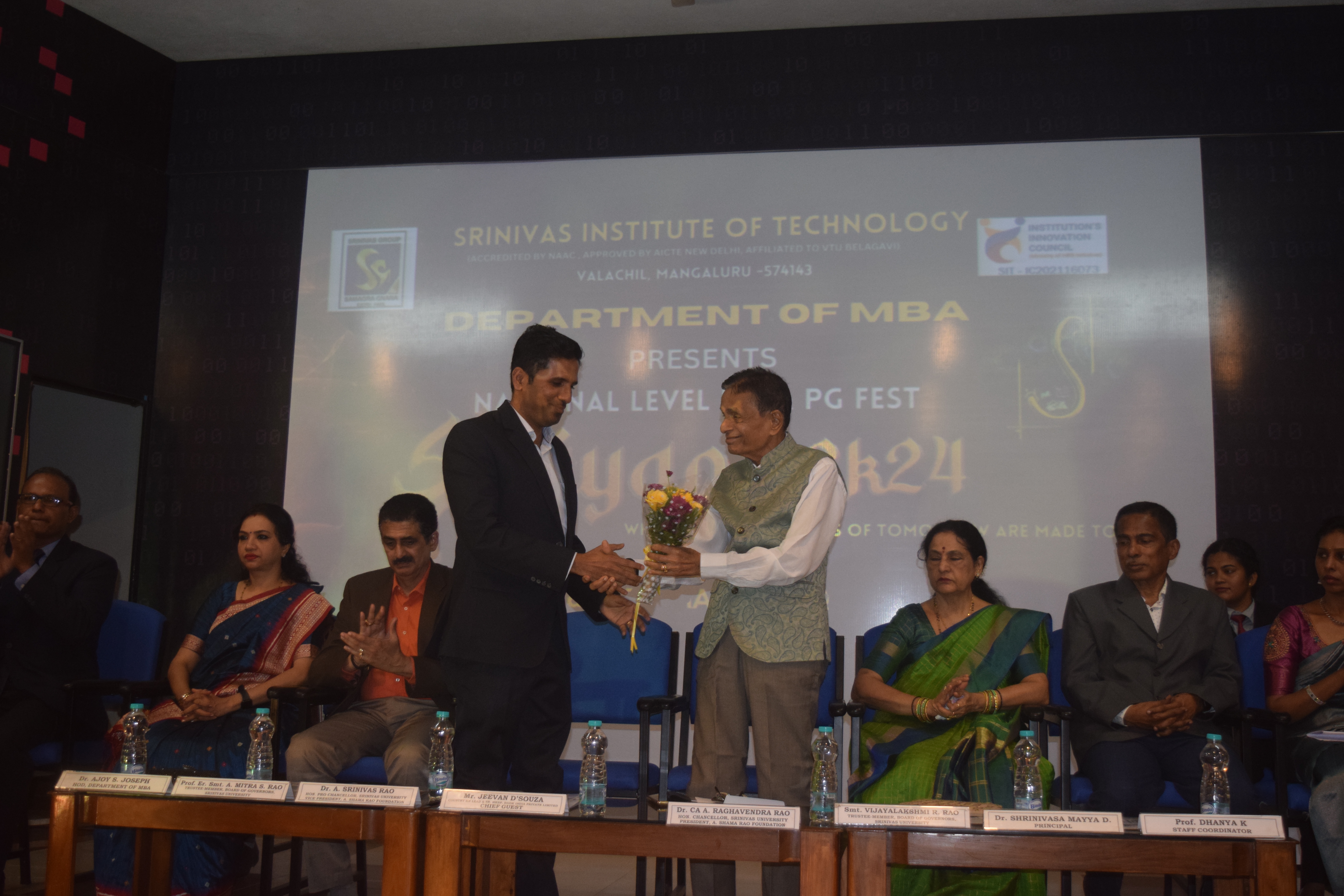 Two days National Level Management fest Shriyans-2024 was organized by MBA department of Srinivas Institute of Technology, Valachil Mangalore on 06th and 07th March 2024. The two-day fest was inaugurated by Mr. Jeevan D’souza country HR lead and Sr HRBP-India EGDK India private limited. Speaking on the occasion he emphasized about the management skills that every management student should possess. His advised the students to make use of all the opportunities that come their way, so that they can excel in their future career. The formal function was inaugurated by lighting the lamp by the dignitaries on the dais along with some participants. More than eight hundred students from various business schools and UG colleges covering different parts of Karnataka and neighbouring states are participating in this management fest. Dr. CA A Raghavendra Rao, Chancellor, Srinivas university, President of A Shama Rao Foundation, Mangaluru presided over the function. In his presidential address he motivated students to put their best efforts in all the activities and he also wished them to win more prizes. Dr. A Srinivas Rao, Pro - Chancellor, Srinivas University and Vice President of A Shama Rao Foundation, Mangaluru, Smt. A Vijayalaxmi R Rao trustee member- board of governors, Smt A. Mithra S Rao trustee member- board of governors Srinivas University, Secretary of A Shama Rao Foundation, Mangaluru were the guests of honour. Dr. A Srinivas Rao, addressing the students emphasized the importance of management fests and the rich experience students would gain from participating. Smt A. Mithra S Rao in her address appreciated the hard work and initiatives of the students saying that it’s very important to make people happy and cared for, which will help them reap rich dividends. Smt. A Vijayalaxmi R Rao graced the occasion. Dr. Shrinivasa Mayya D, Principal, Dr. Ajoy S Joseph, HOD of MBA Department, Prof.Dhanya K, staff Coordinator, Mr.Mohhamed Arfaq and Ms.Prerana Pinto, student coordinators of the management fest were present on the occasion. Ms. Fathimath Mehtab MK and Ms.Moksha were the master of ceremony on the occasion.