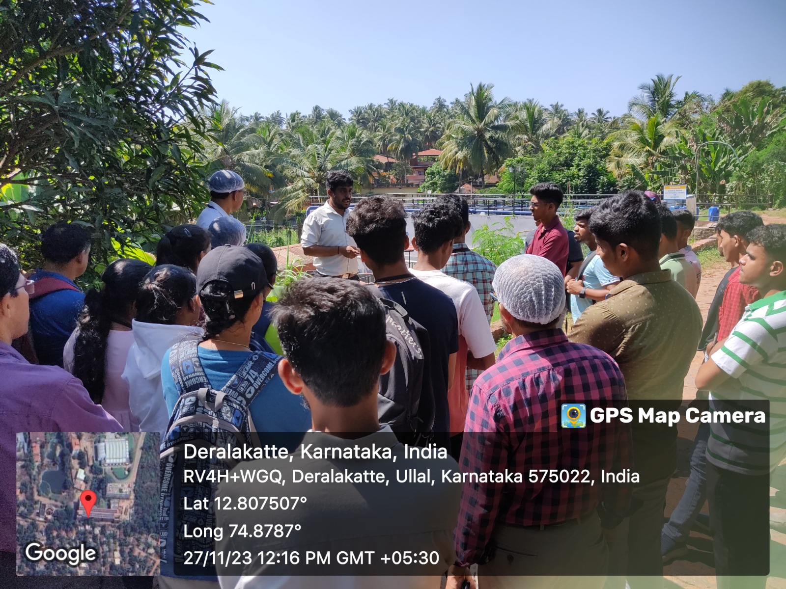 Students of 3rd semester EEE department of Srinivas Institute of Technology, embarked on a field to YenepoyaUniversity, Deralakatte,on 27th of November,2023 to explore and understand sustainable practices related to rainwater harvesting, worm composting, and water treatment plants. This educational initiative aimed to provide students with practical insights into environmental conservation and water management.Mr. Vinayaka Bhatt, Environment Engineer of Yenepoya University guided us for the rainwater harvesting pond, waste water treatment plant and vermicomposting units.First, we visited rain water harvesting pond. They explained the importance of rainwater harvesting in water conservation and demonstrated rainwater collection systems. Later we continued our journey to water treatment plant. They explained various stages of water purification and its uses in the campus. Finally, we visited worm composting unit where they demonstrated how earthworms are used to break down organic waste, transforming it into nutrient-rich compost.