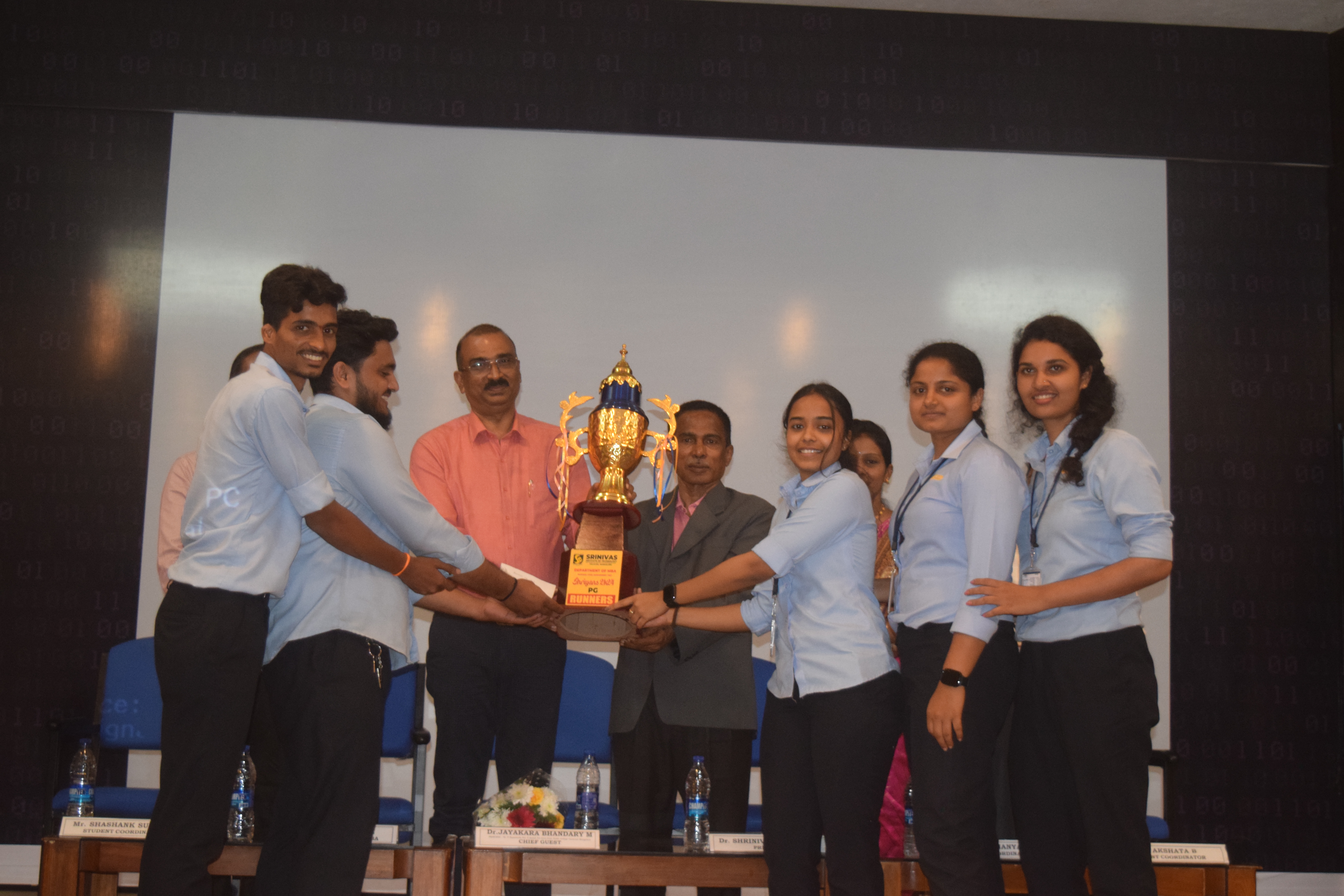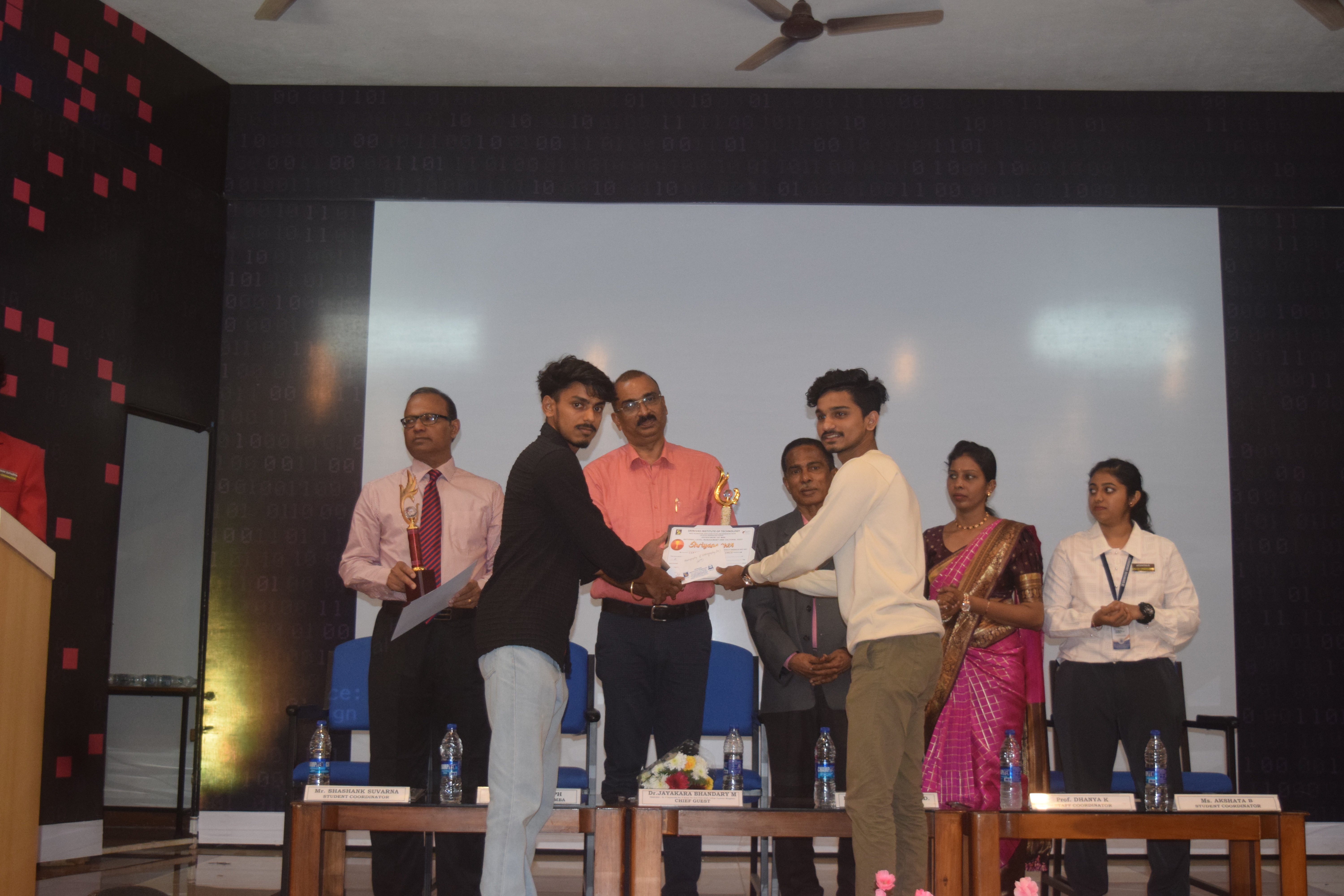 Two days National Level Management fest Shriyans-2024 PG and UG fest was organized by MBA department of Srinivas Institute of Technology, Valachil Mangalore on 6th and 7th March 2024. 7 teams from different MBA colleges participated in the PG fest and 39 teams from different UG colleges participated in the UG fest. Dr. Jayakar Bhandary M, Principal Dr. P. Dayananda Pai - P. Satisha Pai Government First Grade College was the chief guest in the valedictory function who distributed cash prize, Trophies and certificates to the winners of various colleges. He motivated the students to concentrate on their individual goals and areas of their choice. In PG fest the overall winner in the event was SDM Law College and PG studies, Mangaluru, overall runner up Manel Srinivas Nayak Institute of Management. The Best Manager was bagged by Miss Ashwini Y P from SDM Law College and PG studies, Mangaluru. In the business quiz, Mangalore University, Konaje were winners and Manel Srinivas Nayak Institute of Management were runners. Best Management team - Manel Srinivas Nayak Institute of Management were the winners. Shark Tank – SDM Law College and PG studies, Mangaluru – winners and Mangalore University college – runners. In UG fest the overall winner in the event was SDM College, Ujire. Overall runners up were University College, Mangaluru. In the treasure hunt University College, Mangaluru were winners, Best manager was bagged by SDM College, Ujire, traditional show, Shreedevi college, Mangaluru bagged first prize and Vivekananda college of Arts, Science and commerce, puttur were the runners. Group song Vivekananda college of Arts, Science and commerce, puttur – Winners and SDM College of business management, Mangaluru – runners. Group dance – SDM college, Ujire – winners and Vijaya college, Mulki – runners. Photography and videography – University College, Mangaluru – winners and St. Philomena college, Puttur – runners. The function was presided over by Dr.Srinivasa Mayya.D, Principal of the college. Dr.Ajoy S Joseph, HOD of MBA Department, Prof. Dhanya, staff Coordinator, Mr. Arfak, Miss. Prerana and Mr. Shashank, Miss. Akshatha B, student coordinators of the UG & PG fest were present on the occasion. Miss. Saksha Rai and Miss Nishmitha were the master of ceremony on the occasion