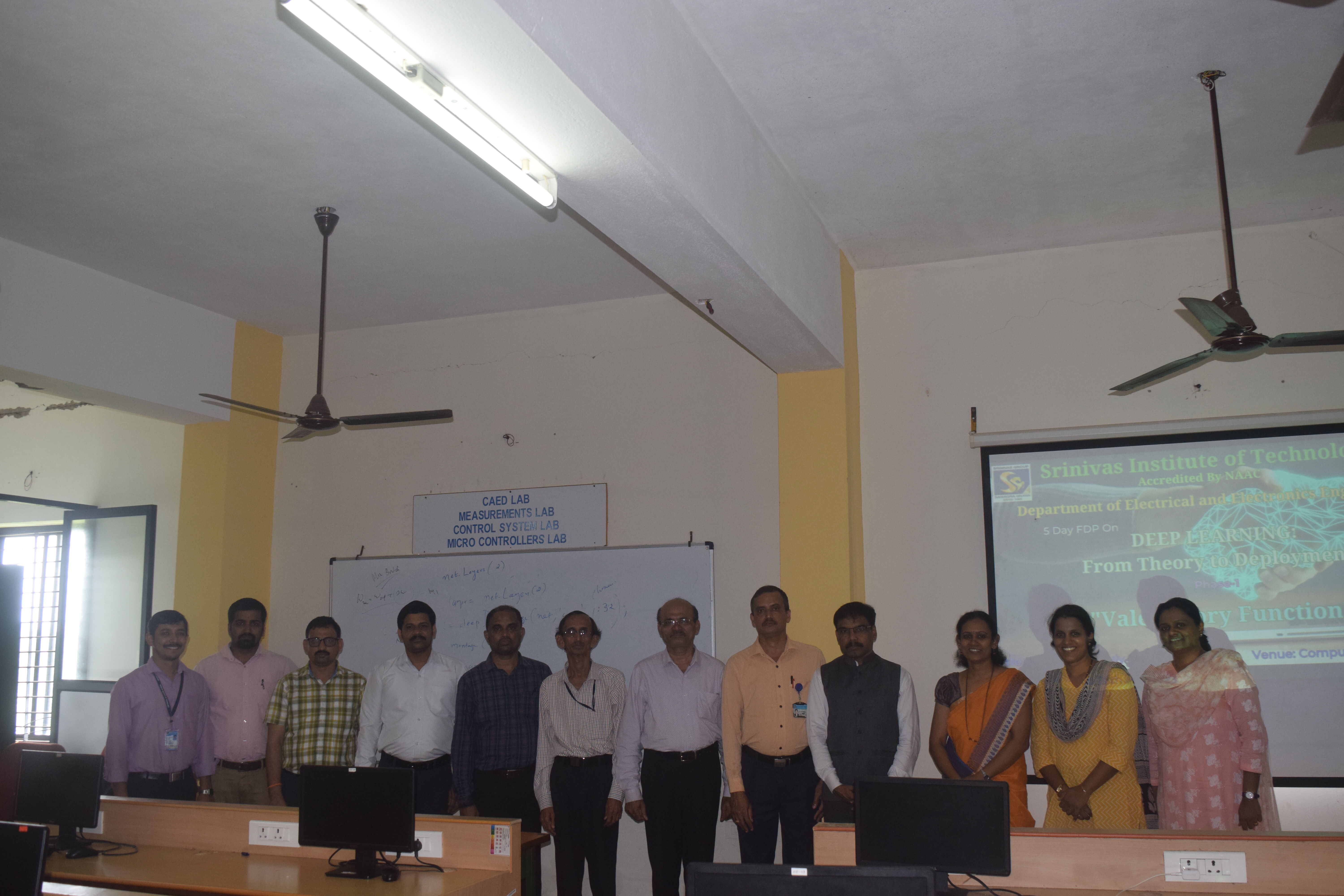 One week Faculty Development Programme (FDP) on “Deep Learning: From Theory to Deployment (Phase 1)” was organized by Department of Electrical & Electronics Engineering, Srinivas Institute of Technology, Mangalure , from 24th July to 28th July,2023. The programme was inaugurated by lighting the lamp by the principal of the college Dr.ShrinivasaMayya D on 24th July at 10am at computer Lab of Electrical Block. In his inaugural address, he advised the participants to utilize all the sessions and gain practical knowledge. The resource person Prof.LokeshaB,Head of EEE department, gave overview of one week FDP. Prof.BheemaShastry welcomed the gathering and Prof. Harshith K proposed the vote of thanks. Master of ceremony for the inaugural function was done by Prof. Ganapathi Sharma and Prof.ShreeramP. Faculty from PA college of Engineering,Canara engineering college and internal faculty from various departments(EC,MR,CS,AIML, Chemistry ,EE)of Srinivas Institute Technology attended the FDP. It was completely a hands-on FDP and participants learned the practical aspects deep learning and its applications. Valedictory function was held on 28th July at 2 pm at computer lab, Electrical Block. In the feedback, participants shared their experience and expressed their desire to attend the Phase 2 of the FDP.Resource person Prof Lokesha Bdistributed the participation certificates to all the participants. Finally one week FDP ended with group photo.