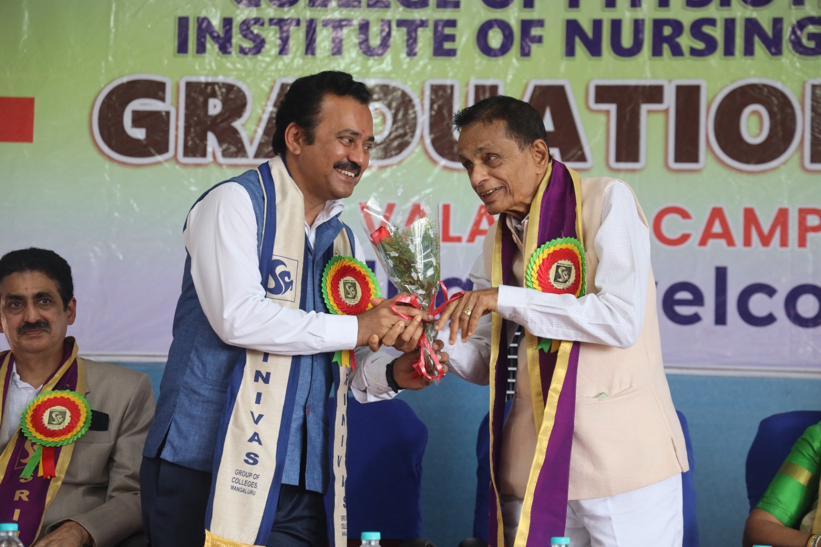 Mangalore: Srinivas Institute of Technology, College of Pharmacy, College of Physiotherapy, Institute of Nursing Science Graduation day held at Valachil campus on April 6th, 2023. Chief Guest Sri. Nagesh Adiga, DGM- HR, Ace Manufacturing System Ltd, Bangalore said, Students, have to give extra effort to learn additional skills so they can face the challenges in future and achieve in their life. Guest of Honour Dr A. Srinivas Rao Honourable Pro-Chancellor and Vice President, A. Shama Rao Foundation congratulated the graduated students for their commitments and hard work to grow in life and successful career. Dr. CA. A. Ragavendra Rao, Honourable Chancellor of Srinivas University and President, A. Shama Rao Foundation in his presidential address said, to build a carrier man should study till the end. Efforts and continued study will help in improving urself. Students are trained here to stand on their own in society and serve them. Srinivas University Board of Governors Trustee members Smt. A. Vijayalakshmi R. Rao and Prof. Er. A. Mitra S. Rao, Principal, SCP &RC Dr. Rajashekar S. , Principal SINS Dr. Pradeepa M., Srinivas University Registrar Dr. Anil Kumar, Srinivas University Development Registrar Dr. Ajay Kumar we're present. Srinivas Institute of Technology Principal Dr. Srinivasa Mayya D. Welcomed the gathering, SCP Principal Dr. Ramakrishna Shabaraya A. Conveyed vote of thanks. Dr. Ambika Mallya and Prof. Stevan Robert Tellies hosted the event.