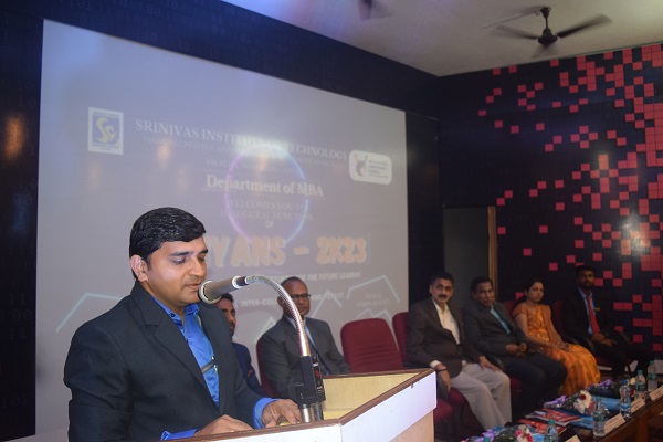Two days National Level Management fest Shriyans-2023 was organized by MBA department of Srinivas Institute of Technology, Valachil Mangalore on 23rd and 24th May 2023. The two day fest was inaugurated by Mr.Jayaraj K, Branch Manager, Bajaj Capital Ltd., Mangaluru, Speaking on the occasion he emphasized about the management skills that every management student should possess, he said the Indian economy is growing, and students have lots of opportunities, he also inspired students to participate in such events. The formal function was inaugurated by lighting the lamp by the dignitaries on the dais along with some participants of the colleges. More than five hundred students from various business schools and UG colleges covering different parts of Karnataka and neighbouring states are participating in this management fest. Dr.A Srinivas Rao, Pro - Chancellor, Srinivas University and Vice President of A Shama Rao Foundation, Mangalore presided over the function and addressed the gathering. In his address he motivated students to put their efforts in all the activities he also wished them to win more number of prizes. Principal of the college Dr.Shrinivasa Mayya D, Dr.Ajoy S Joseph, HOD of MBA Department, Prof.Ashwini, Prof.Sadananda staff Coordinators, Mr.Rakshith Kumar, student coordinator of the management fest were present on the occasion. Mr. Hemanth Kumar and Miss Prerana were the master of ceremony on the occasion.