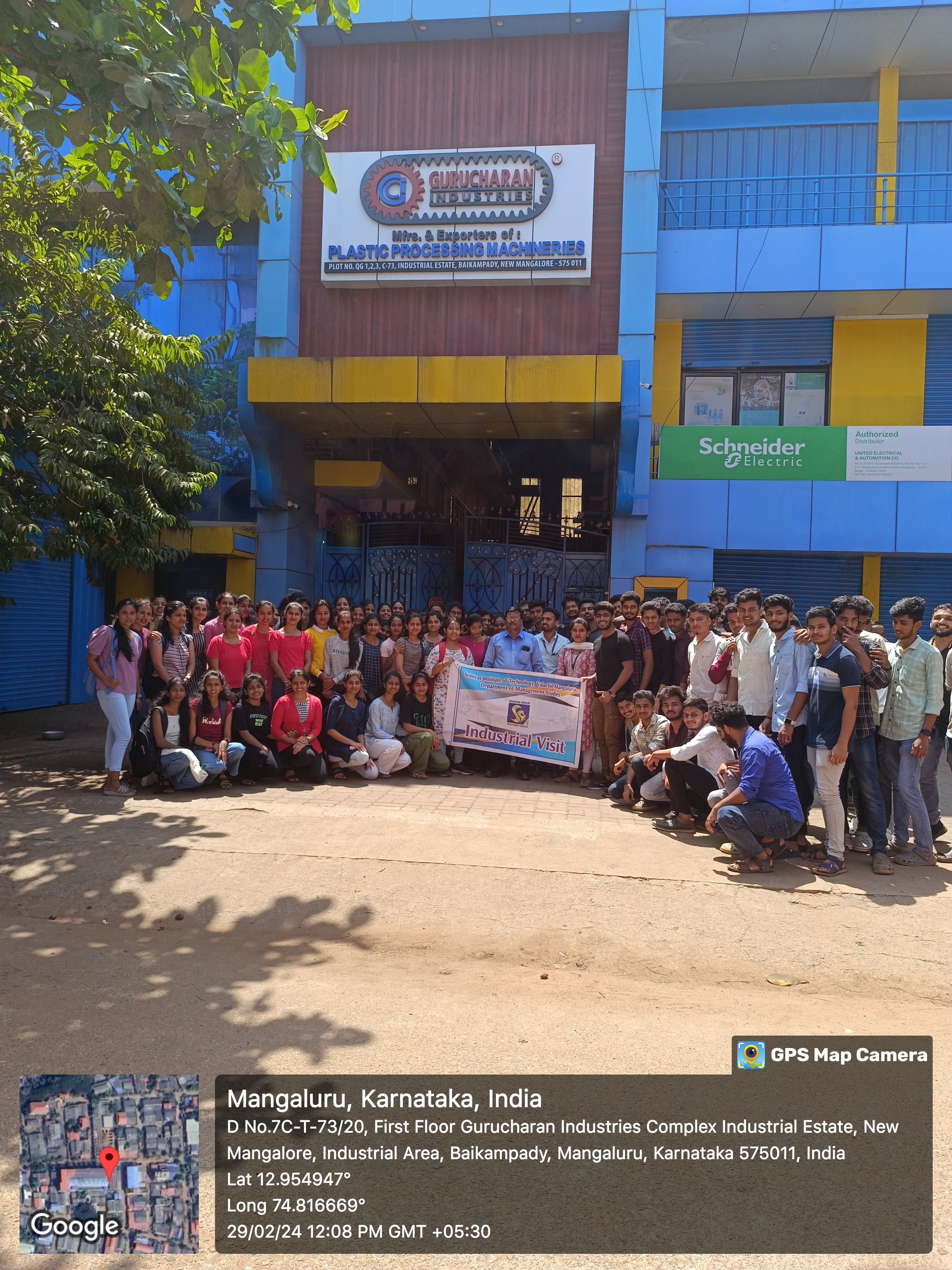 A Field/Exposure visit to workshop has been arranged by MBA department on 29th February 2024 to “Gurucharan Industries” Industrial Estate, Baikampady, Mangalore under the banner of VOLMAS in association with Institution’s Innovation Council.The students of first year MBA took part in the field Exposure visit and interacted with the management of Gurucharan Industries and discussed about the various working aspects with the staff. A total of 150 students took part in the Field/Exposure visit accompanied by 2 faculty members from the department. The students had the opportunity to visit the workshop and see the manufacturing process.