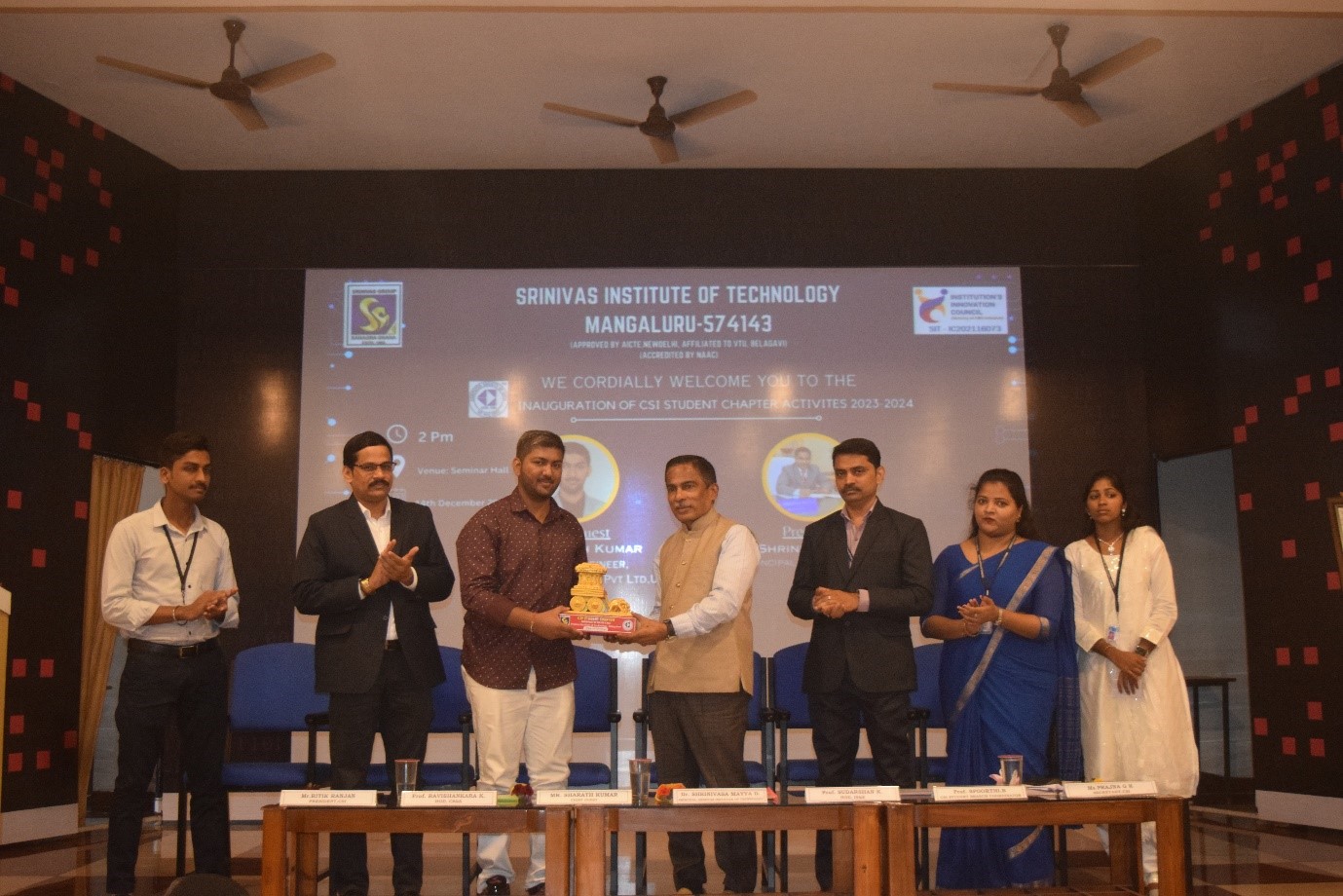 The inaugural ceremony of the Computer Society of India (CSI) student chapter for the academic year 2023-2024 took place on Thursday, December 14,2023, at Srinivas Institute of Technology, Valachil, Mangaluru. The event was graced by the esteemed Chief Guest, Mr. Sharath Kumar, Robosoft Technologies pvt Ltd, Udupi During his inaugural address, Mr. Sharath Kumar emphasized the significance of active participation in various events and he also spotlighted the valuable lessons, encountered challenges, and pivotal moments that have played a defining role in shaping his career as an esteemed alumnus.Dr. Shrinivasa Mayya D, the Principal of the college, delivered a compelling presidential address, urging students to organize a maximum number of events under CSI and take initiatives to turn their ideas into realities. Prof. Ravishankara K, H.O.D, CS&E, in his address appreciated the students for their active participation in the events conducted so far and he further highlighted the significance of active involvement with professional associations as a key avenue for further developing their capabilities.Prof. Spoorthi. B, CSI Student Branch Coordinator, provided an overview of the association's objectives and introduced the office bearers for the year 2023-2024.Mr. Chinmaya Ramana, Technical coordinator of CSI, highlighted the activities conducted so far and presented the plan of action for 2023-2024.Mr. Ritik Ranjan, President of CSI, extended a warm welcome to the distinguished gathering, while Ms. Prajna G K, Secretary of CSI, delivered vote of thanks. The program was compered by Ms. Pooja D J and Mr. Arpith.Following the formal function, Mr. Sharath Kumar, Software Engineer delivered a technical talk on “Micro frontends- a microservice approach to the modern web”