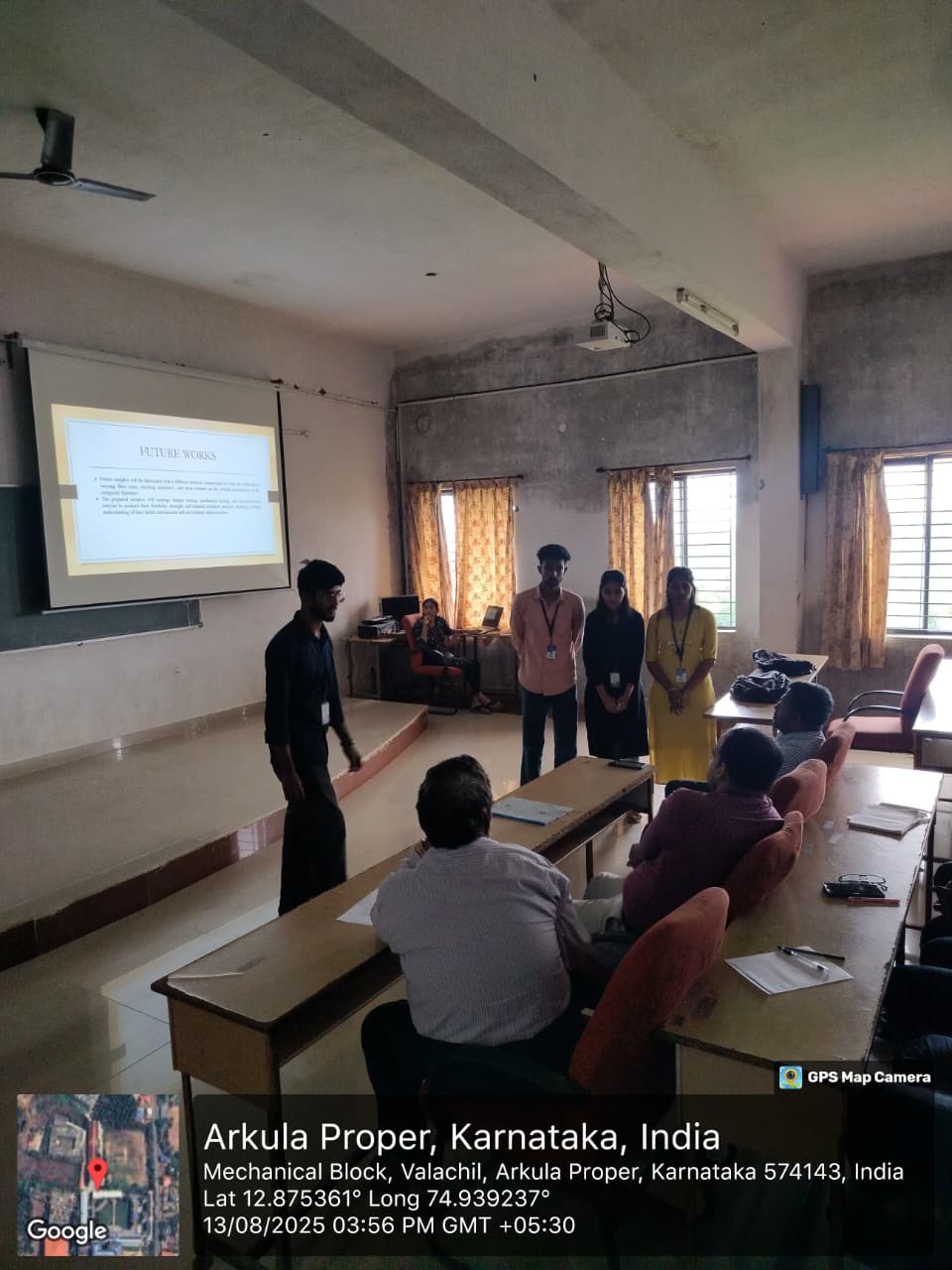 The Department of Aeronautical and Automobile Engineering Srinivas Institute of Technology Valachil Mangaluru in collaboration with the Yukti Innovation Cell and IIC organized the Wings and Wheels Innovation Challenge on 13th August 2025 at 200 PM The event was held at Room M501 5th Floor Mechanical Block SIT Mangaluru The event serves as a platform to showcase creativity and innovation in the fields of aeronautics and automobiles It encourages participants to tackle emerging challenges in the transportation and mobility sector by generating fresh ideas developing viable solutions and presenting their results Its structure is aimed at cultivating an innovationoriented mindset strengthening problemsolving skills and promoting entrepreneurial thinking among students The Wings and Wheels Innovation Challenge was guided by Dr Sandesh Kumar Rai Head of Automobile Engineering with Principal Dr Shrinivasa Mayya D emphasizing the value of innovation The event was effectively organized under the leadership of Dr Praveen Shenoy Head of Aeronautical Engineering and IIC Coordinator while Mr Jagadeesh B Yukti Innovation Cell Coordinator ensured its smooth and successful execution The event encouraged active engagement between participants mentors and evaluators creating meaningful exchanges vital for innovation Students interacted with professionals through discussions clarifications and idea sharing in an open learning atmosphere Mentors guided participants with constructive feedback to refine ideas enhance designs and align solutions with practical applications Evaluators offered valuable inputs that inspired new perspectives and creative thinking This collaborative process promoted knowledge sharing confidence building and the development of communication and entrepreneurial skills The program concluded with the final evaluation and prize distribution honoring the most innovative solutions
