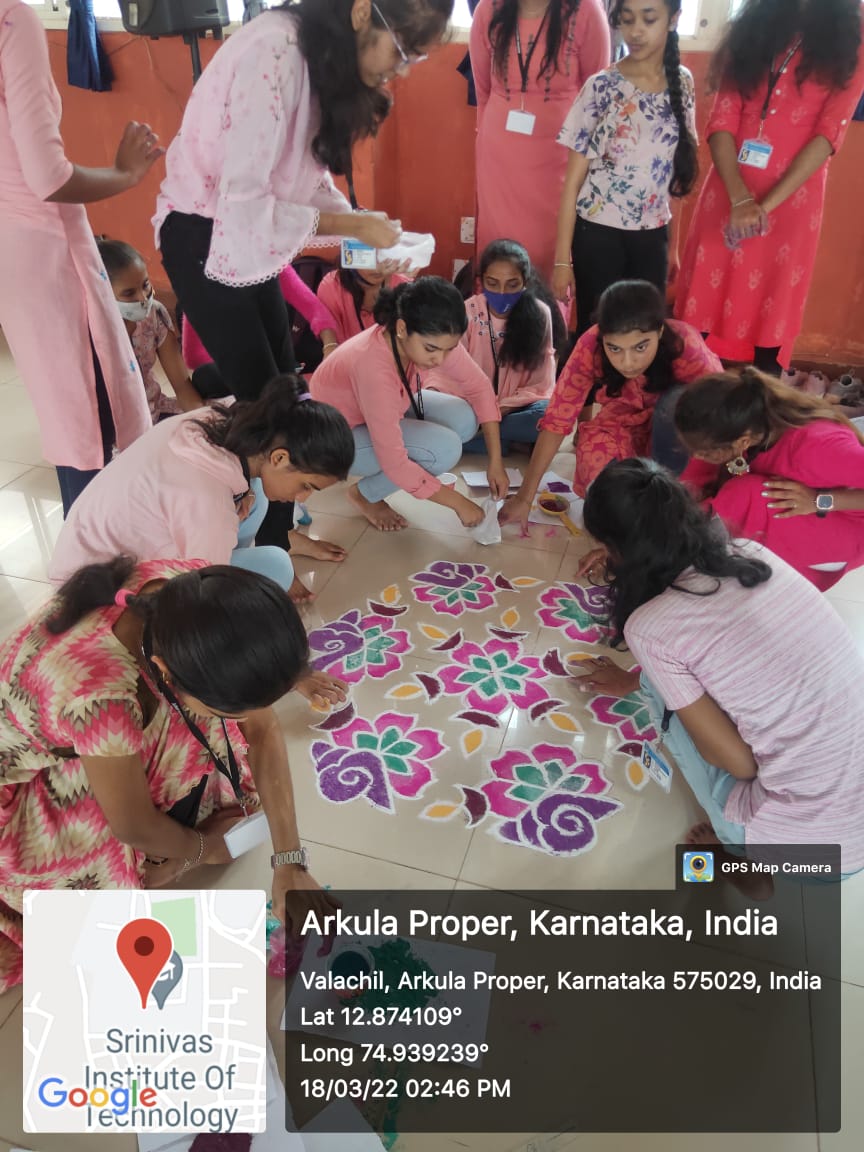 “RANGON KI BAARISH “- a celebration of Holi was organized in Srinivas Institute of Technology, Valachil on 18/03/22 in association with Cultural Committee LALITHARANGA. A program was inaugurated by Dr. Shrivasa Mayya D. by planting a Plant and also he gave his presidential words to the students with his kind and motivational thoughts.The various events like Rangoli, Kite Fest & Palm Crafts were prearranged symbolizing the festive of colour in very distinctive way. All the students have been excited and had participated actively and had all the fun of Holi.