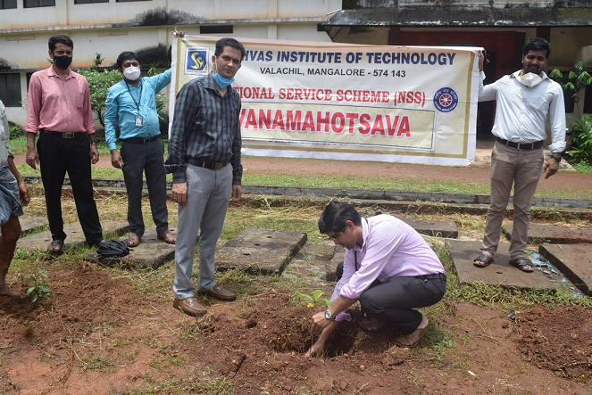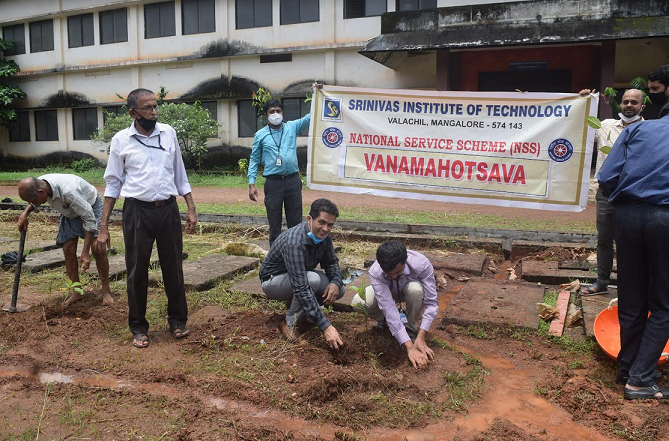 Vanamahotsava was celebrated on Friday 27th August 2021. The event was Presided by Dr.A.RAGHAVENDRA RAO, chartered accountant, Chancellor, Srinivas University, President, A. Shama Rao Foundation, Mangaluru. He encouraged the gathering to make the planet greener and cleaner. He also told that vanamahotsav is an event where we are making a valuable contribution to upcoming generation to get a fresh air to breath. Dr. Ajay , Registrar, Development, Srinivas university and Dr. Shrivasa Mayya D, Principal was present in the occasion. Prof. Shashank, welcomed the gathering and Prof. Rakesh Mallya , thanked the gathering.